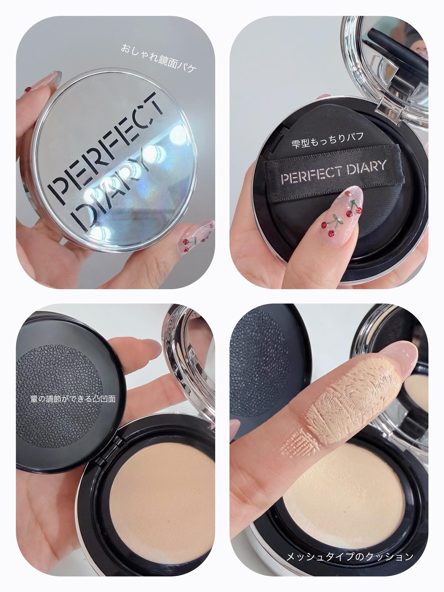 85%美容成分*¹を配合した使うほどにお肌が潤うPERFECT DIARYの新作クッションファンデ✨️ 自然な血色感をプラスして透き通るような*²陶器肌を演出します🤲 みずみずしく軽い塗り心地なのにカバー力も申し分なく、コンシーラー無しでもしっかりとカバーしてくれるので