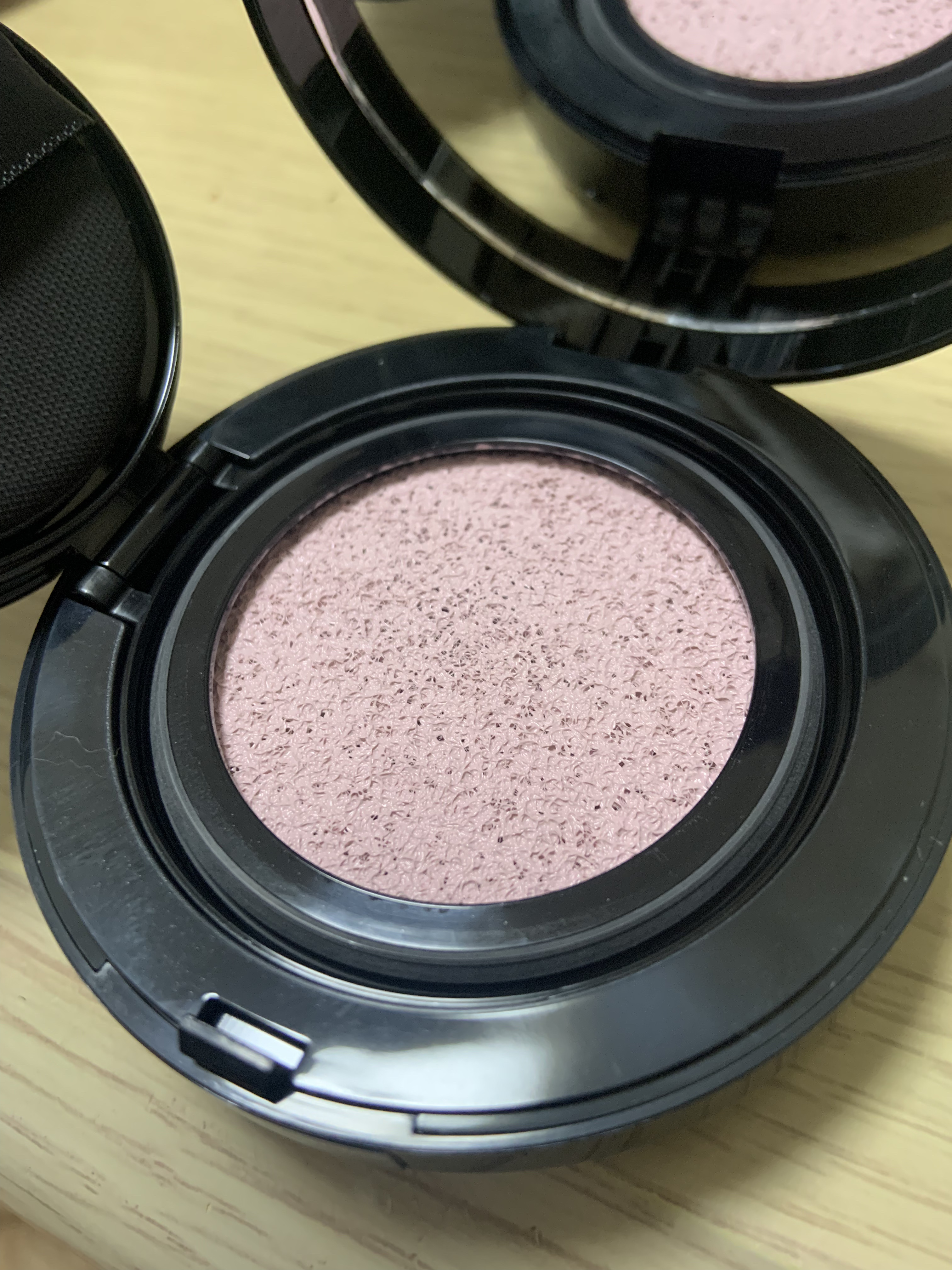 こちらはニュアンスカラーで気になるくすみ・毛穴・凹凸をカバーしてくれるクッションファンデ! スノーライラックの色味はほんのりとした明るい紫!ナチュラルベージュ系の下地を塗ったあとに乗せると色味の差がわかりやすいかな~と思って塗った状態で比較してみたよ🙆 リップモンスターの密着ジェル膜をファンデにも応用した製品で密着感やカラーカバー力も◎