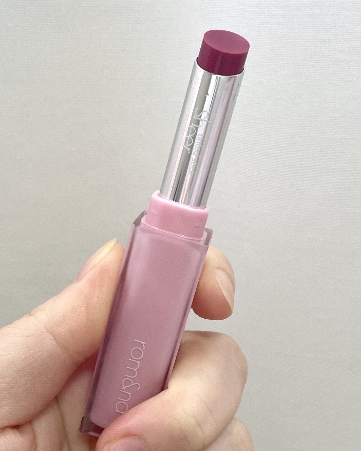 公式画像よりも青みピンクっぽいカラー🎀💕 とろける塗り心地でお気に入り◎ 香りはなし。 ブライトサマーの方に1番合いそう☝🏻 明るさが得意な方にも♪ 容器もかわいくて持ってるだけで気分が上がる⤴️ ロムアンドって韓国雑貨っぽくて好き🥹