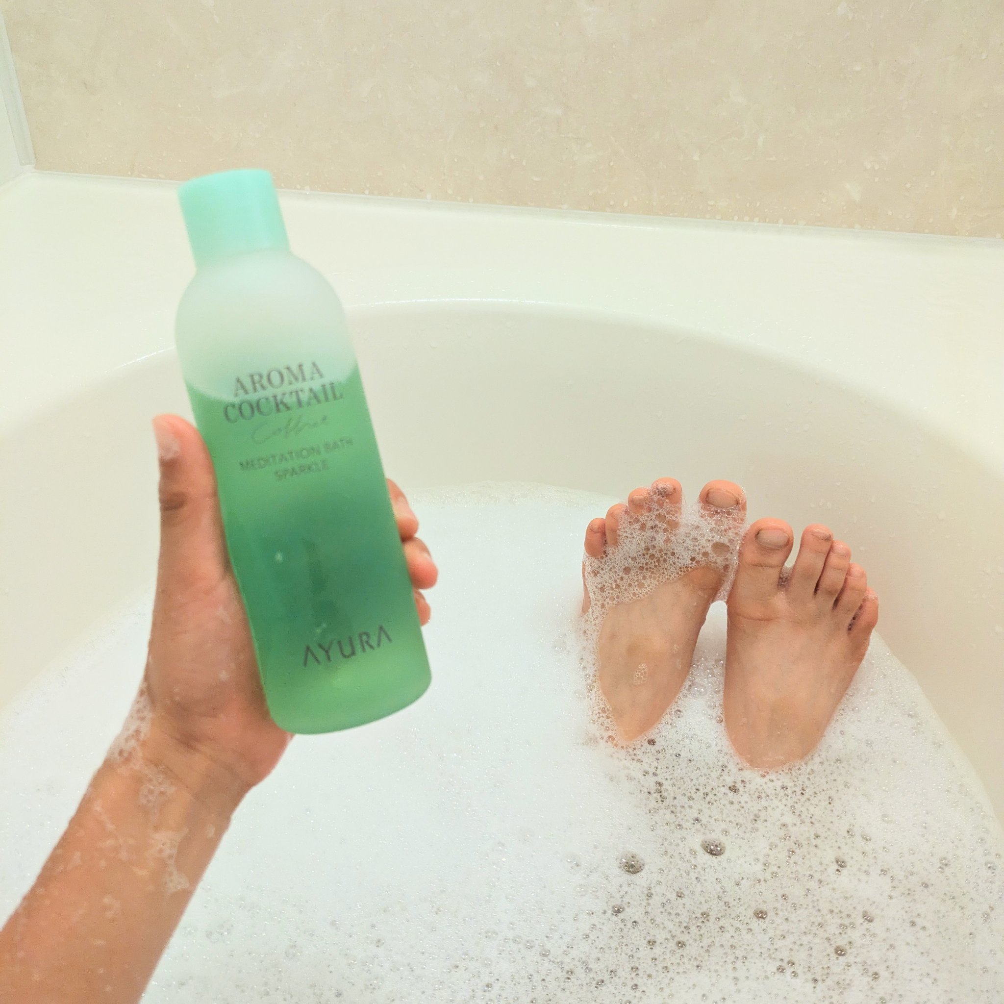 毎日の夜時間が楽しみです。 私はお風呂時間が大好きです。アロマカクテルで入浴剤選びを。どの香りにしようかな?と選ぶのもまた楽しい。 アロマカクテルコフレには、✔メディテーションバス スパークル ✔スピリットオブアユーラ アロマバス ✔スピリットオブアユーラ アロマエッセンスオイルが、入っています。 スパークルは、泡立つからご褒美時間にも。 子ども達も大喜び!泡立てずにまろやかな感じで使うのもよき。