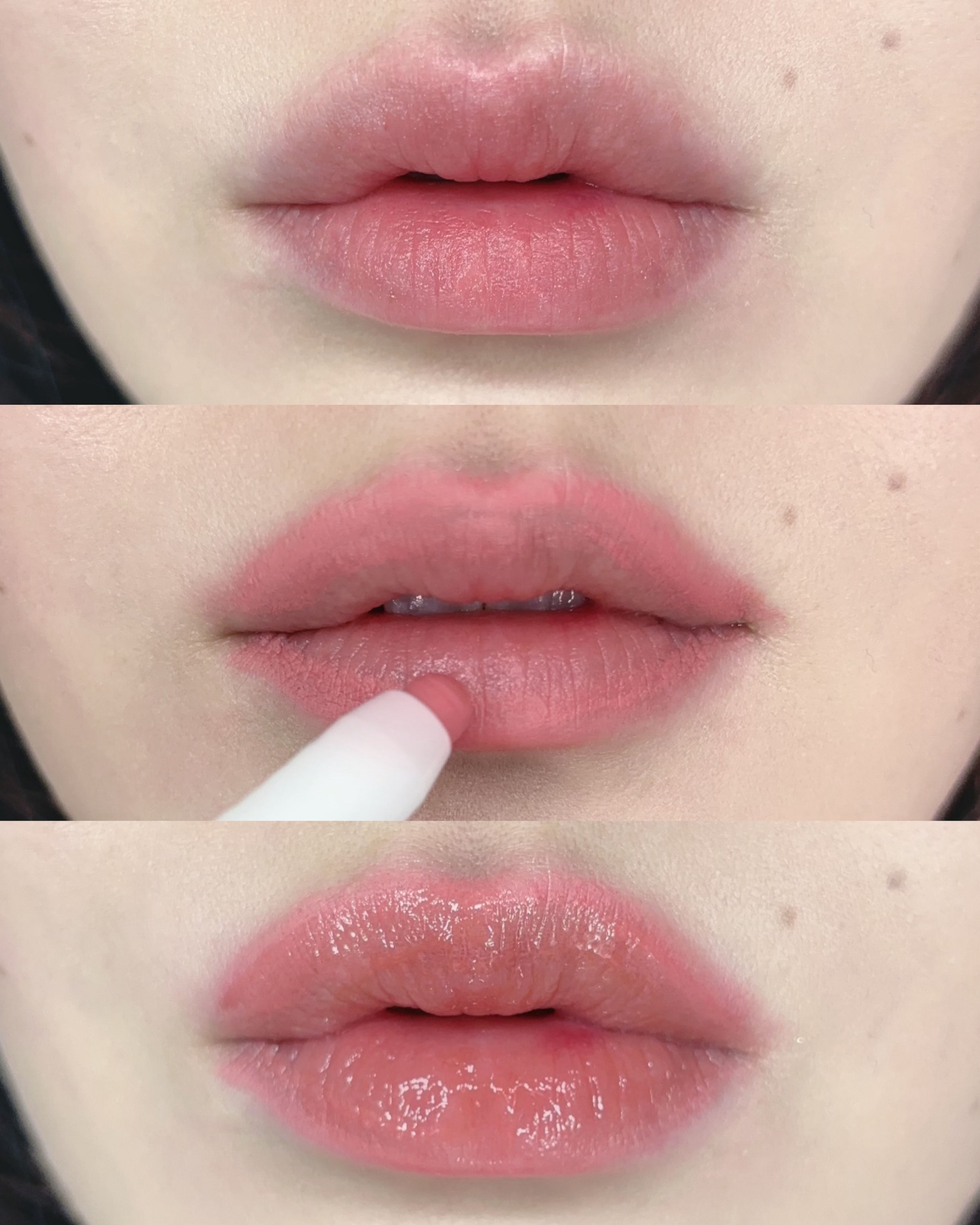 透けツヤ感がかわいすぎるうるちゅるティント🤍 時間を置くとよりじゅわっとツヤ感が出てくる〜✨ つけ心地は軽めで色残りも少ないから重ねても濃くなりにくいところが好き🤍 シアーな発色だから使ったことがないカラーにチャレンジするのにもいいと思う🫶🏻