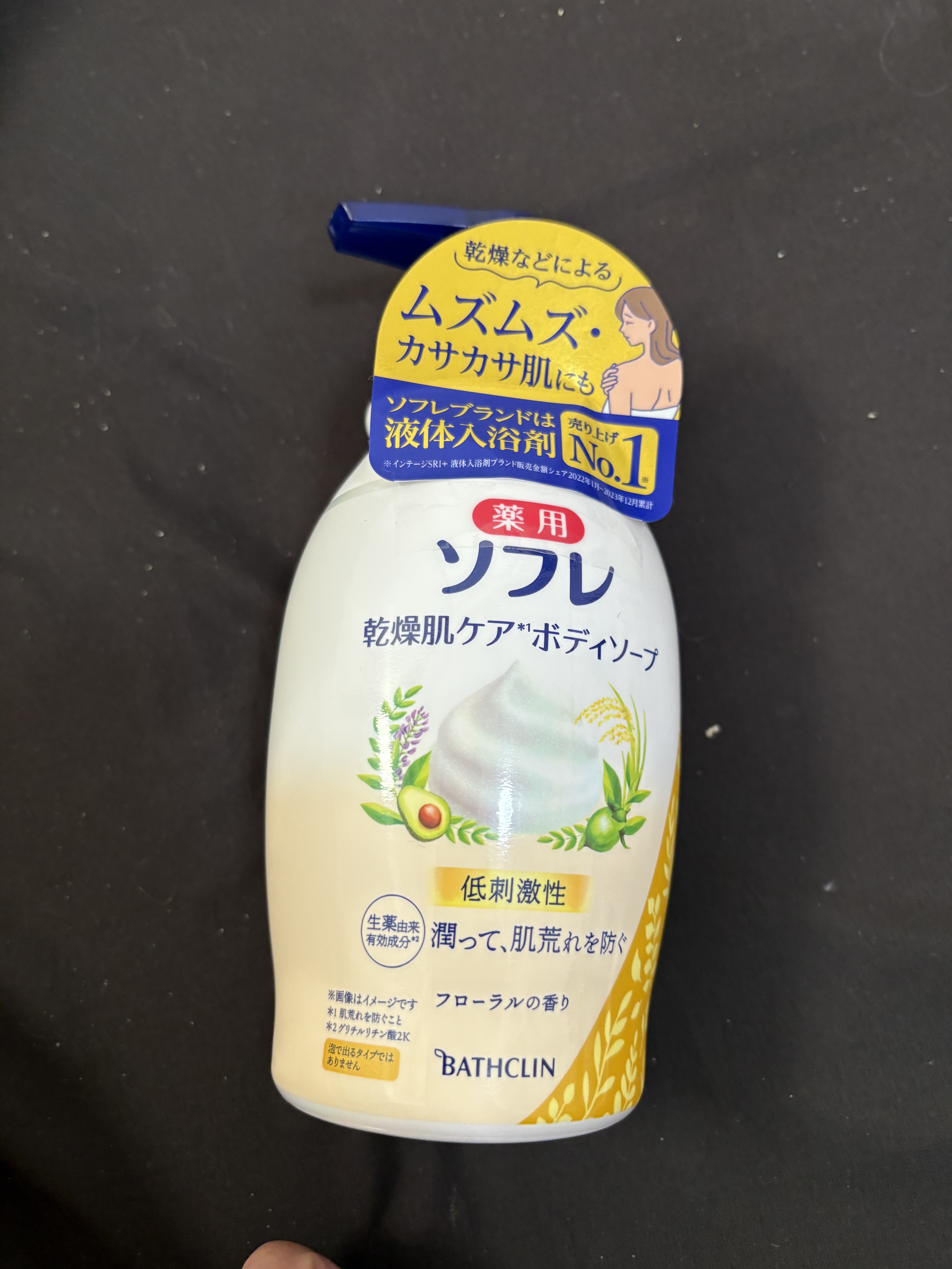 💚薬用ソフレ薬用ソフレ 乾燥肌ケアボディソープ本体ボトル450ml見たことない薬用ソフレ 乾燥肌ケアボディソープそうなると試したくなるだいたい680円前後くらい。赤ちゃんから(3ヶ月)使えるみたいです。普通の石鹸のような優しいフローラルの香り。アルコール、 パラベン、色素、鉱物油界面活性剤フリーニキビ、カミソリ負け、肌荒れを防いてくれます。洗いあがり 私にはうすく乳液をぬったようなトゥルンとした肌触りきちんと保湿してくれたのかなと感じました。人それぞれですから気になる方は店頭でチェックしてみてください。私はイオンで見つけました😊