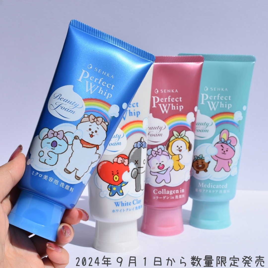 BT21とコラボした限定デザインのパーフェクトホイップ(全4種セット)をSENKA様よりいただきました✨ デザインもオリジナルギフトBOXも可愛すぎる..🥹💓 きめ細かいミクロ美容泡が気持ちよくて大好きなパーフェクトホイップ☁️ 肌の調子に合わせて使い分けたい🫶🏻 🤍パーフェクトホイップホワイトクレイ 毛穴の角栓・黒ずみ悩みに 💚パーフェクトホイップアクネケア(医薬部外品) 大人のニキビ・肌あれ予防に
