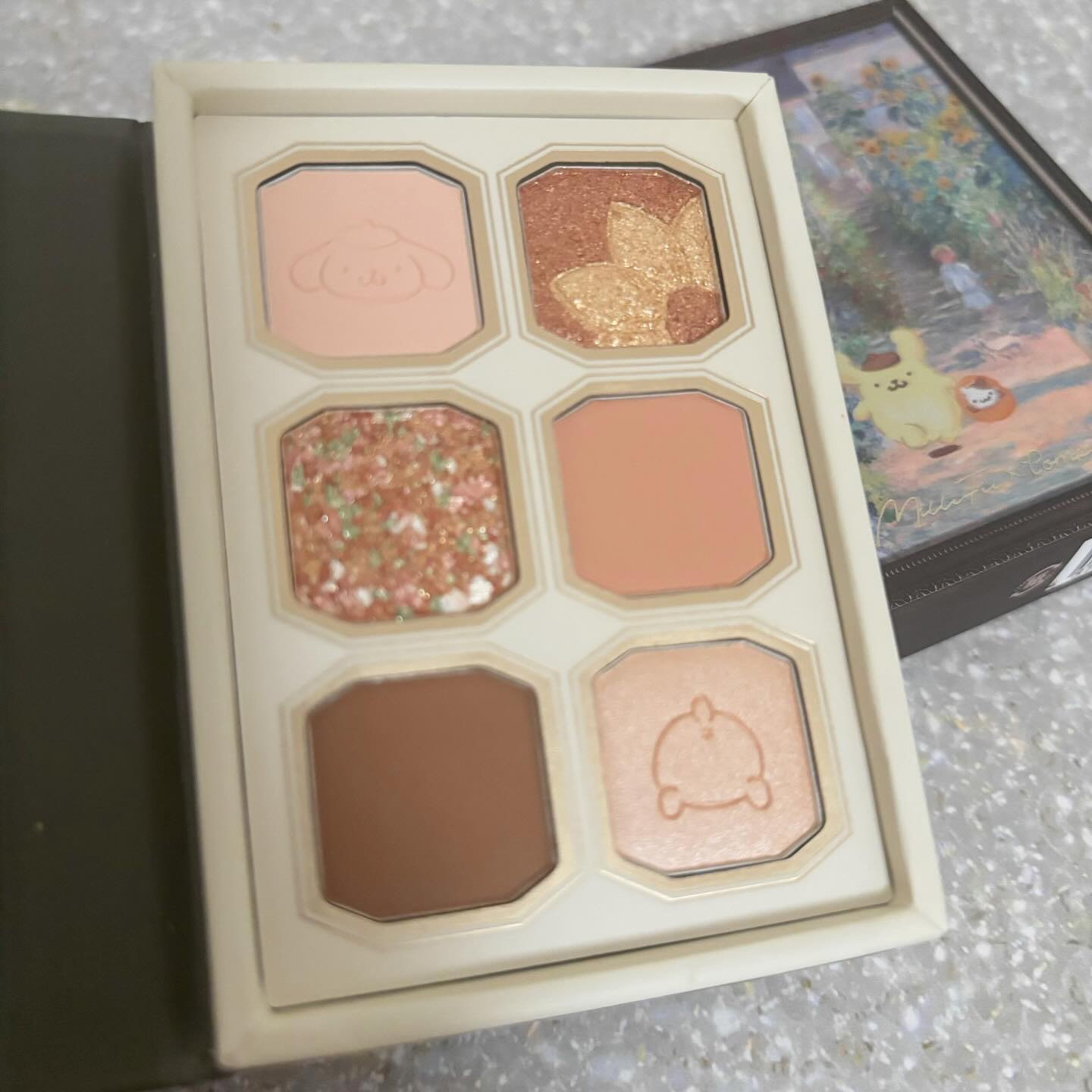 まるで本物の絵画のようなパッケージで本当に絵の具で塗ったような触り心地というこだわり。 マイメロディ、ポムポムプリン、シナモロールがそれぞれ人気絵画に紛れ込んでいるよ♡ マット、パール、ラメなど様々な質感が6色入ったパレット。使い道は自由自在♪