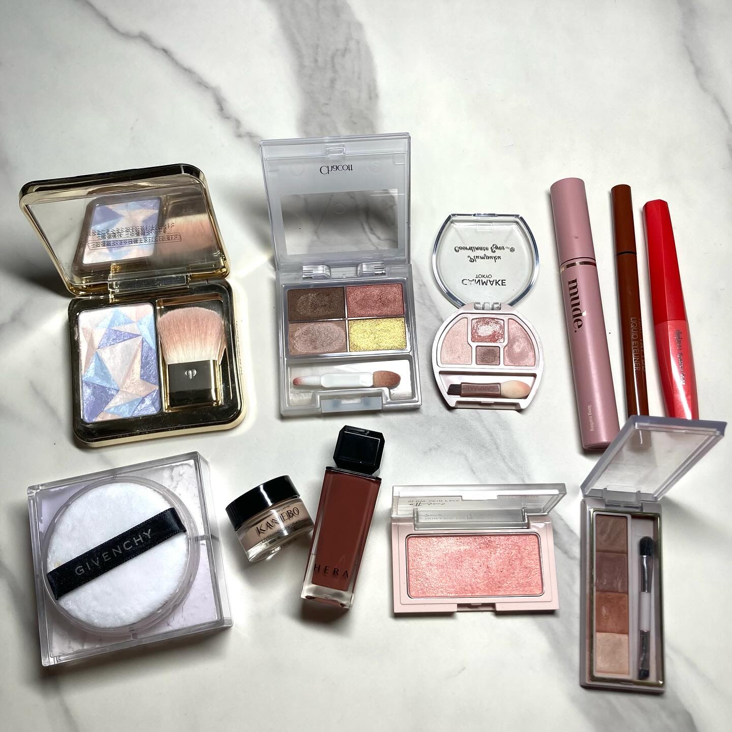 ************#今日のメイクチャコットフェイスカラーパレット515ローマンテラコッタこれは秋メイクにピッタリ🍁✨左下が結構くすみカラーなので、先に使うと右上テラコッタにだいぶ深みが出る感じ!あんまりくすみ得意じゃないから、右上テラコッタを最初からドーンって使ってもいいかもなあ〜🤔右下ゴールドはしっかり黄みのあるゴールドで、より秋らしさアップする気がする!!下まぶたは底見えしたプランぷくNeoN01このラメ好きだからもう少し面積広げてほしい☺️笑目元が落ち着いている分、チークは少し明るめの方がいいなと思ってエテュセのグロウスキンフェイスカラー03やさしいピンクでお気に入り♡ハイライトはクレドのデクラ112年前?くらいのホリデーのもの🧜♀️ゴールドパールが上品できれい!!リップはHERAのセンシュアルヌードグロス462スピーチレスこのカラー少し深みあって秋メイクにピッタリだ〜♡しっとりツヤツヤ!たくさん使お🫶ファンデーションはKANEBOさまからいただいた、ライブリースキンウェアII(リニューアルした方)のサンプル!カラーは230バニラです。(1つ前の投稿参照)そろそろベースメイクもしっとりのものに変えないとな😚※過去提供品含んでいます。#毎日メイク#チャコットアイシャドウ#フェイスカラーパレット#ローマンテラコッタ#秋メイク#ブラウンで魅せる目もと