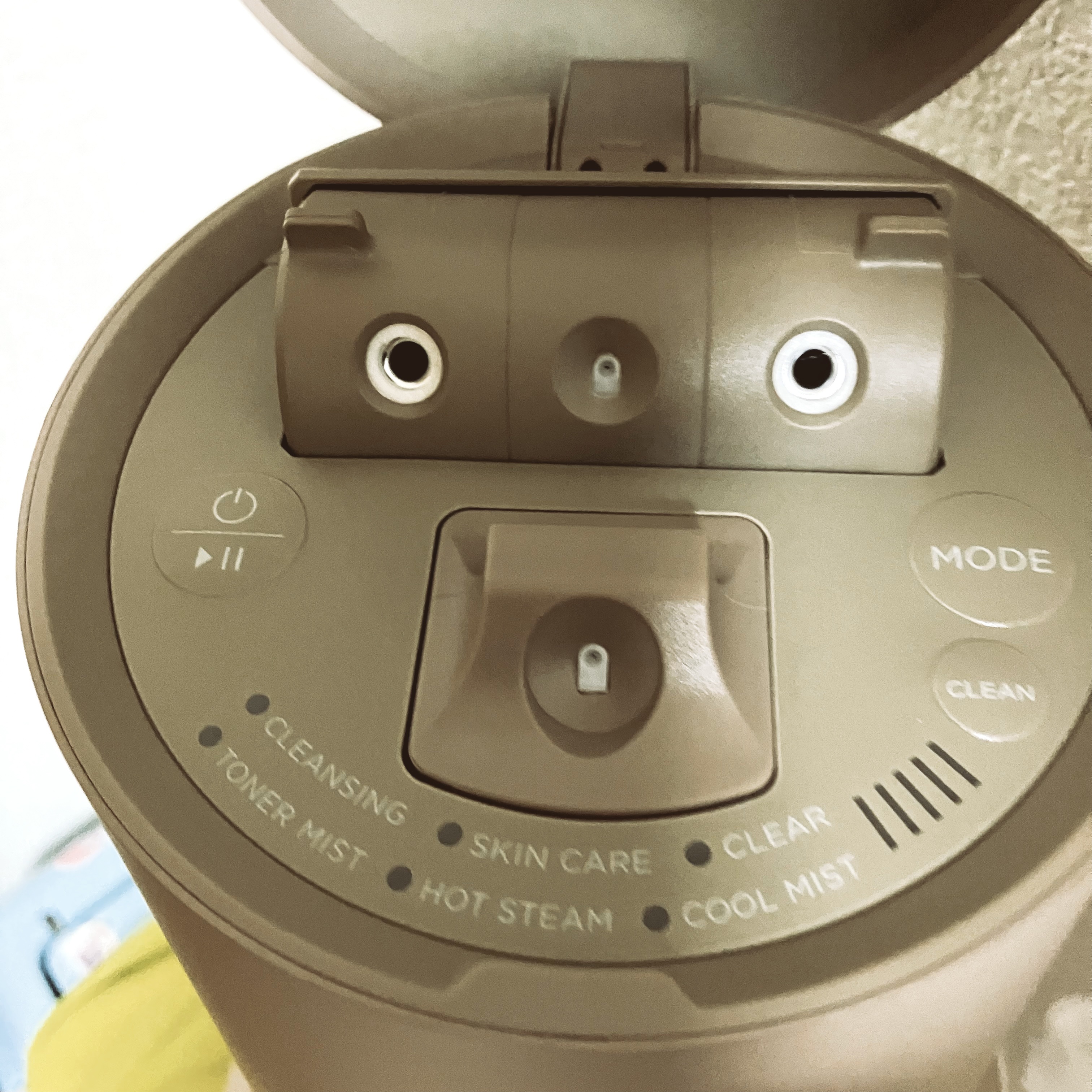 スチームが出るタイプの美顔器。クレンジングや温スチーム、冷ミストで引き締めも出来ます✨️ インテリアに馴染み、暖かい色の本体。化粧水ミストも出せます。 乾燥してくる季節のお供に😆