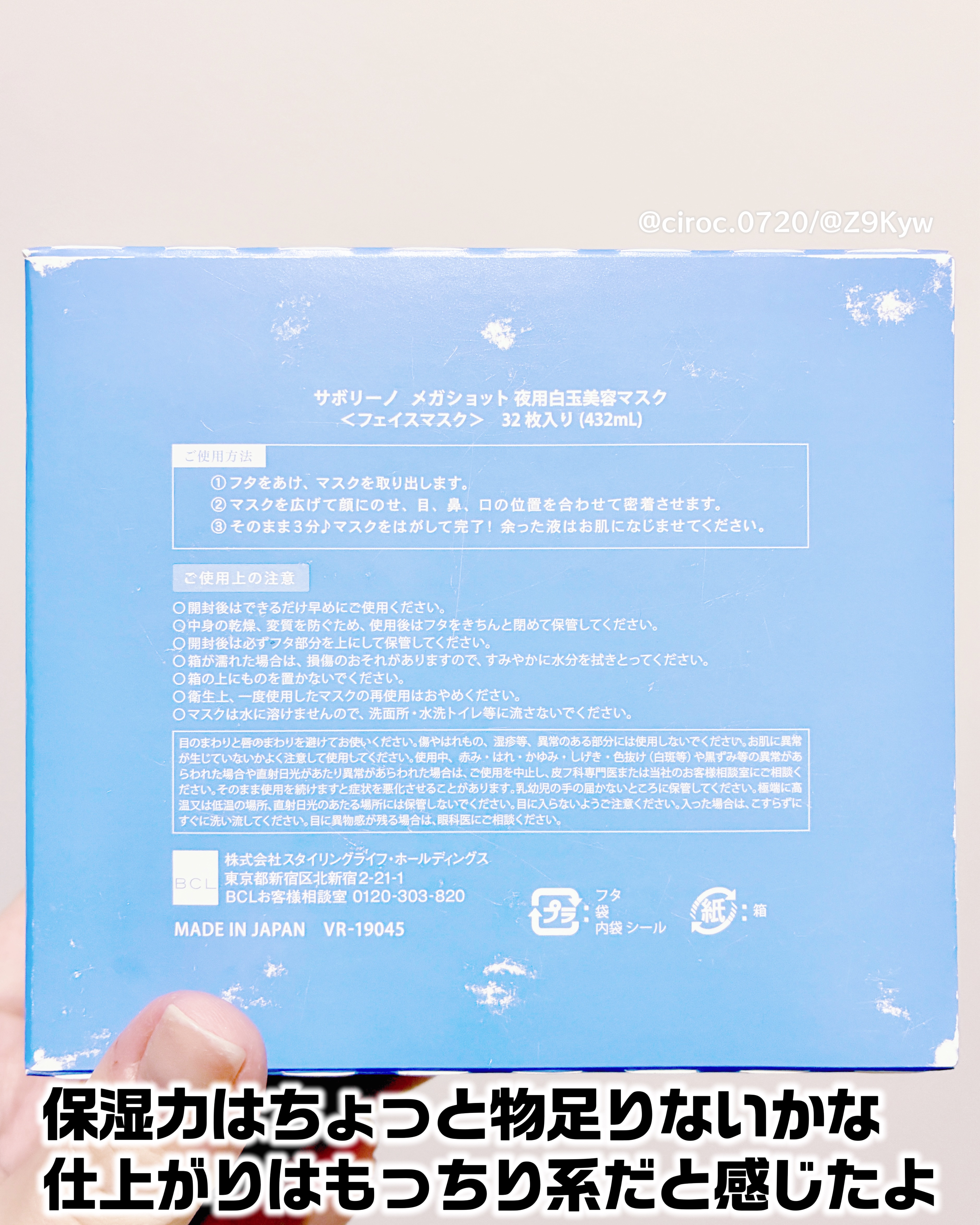 \オールインワン有難いんだけど…/▶︎サボリーノ メガショット 夜用白玉美容マスク化粧水、乳液、美容液、クリームがこれ一枚で叶うオールインワン処方マスク貼って3分でケア出来ちゃう楽ちんアイテム💮パケも可愛いし口コミも良かったので使ってみたけど私には保湿感が物足りなかったです…触った感じだと美容液にちゃんと浸っていて密着力あるしシートの質感も◎ルルルンのマスクみたいに保湿力が高いイメージだったのですがこれだけでスキンケアを終わるとなると肌が乾燥してしまいました😢化粧水とクリームをプラスして使うと良くなりますただ香りが強いです⚠️乾燥肌さんは春夏の使用がおすすめ参考になれば嬉しいです🧸🌸#乾燥シーズンの肌管理#サボリーノ#夜用白玉美容マスク#スキンケア