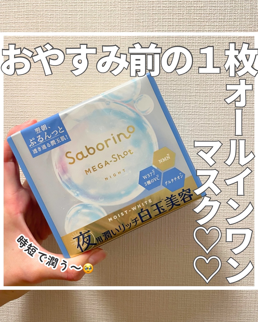\オールインワン有難いんだけど…/▶︎サボリーノ メガショット 夜用白玉美容マスク化粧水、乳液、美容液、クリームがこれ一枚で叶うオールインワン処方マスク貼って3分でケア出来ちゃう楽ちんアイテム💮パケも可愛いし口コミも良かったので使ってみたけど...