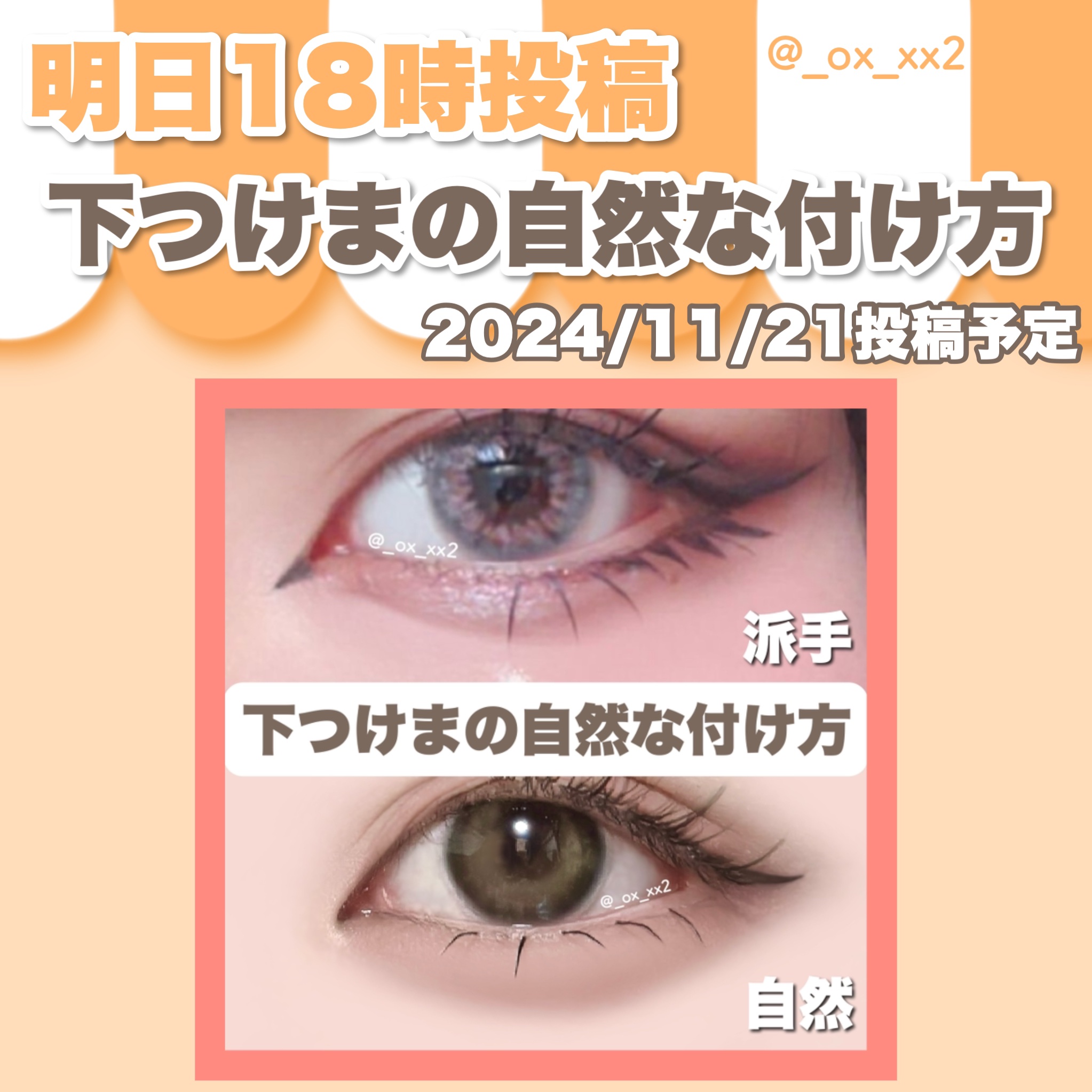 秋メイクなので赤っぽく仕上げると◎ (もう少し赤オレンジっぽくしても◎) カラコンはナチュラルな緑系が◎ (赤の補色が緑なので目元がぼやけないので◎) デートメイクなのでまつ毛もつけまでしっかり存在感を出す! (自まつでいける方は自まつでも◎)