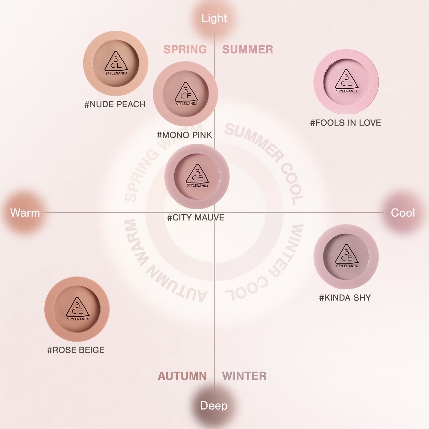 #PR3CEさまからいただきました💐3CE・フェイスブラッシュ└カインダシャイ└シティモーヴ└モノピンク└ローズベージュ└ヌードピーチ└フールインラブぽわんと染まる、血色感*素肌に溶け込むような、やわらかチークほんわり可憐な血色感*が多幸感を...