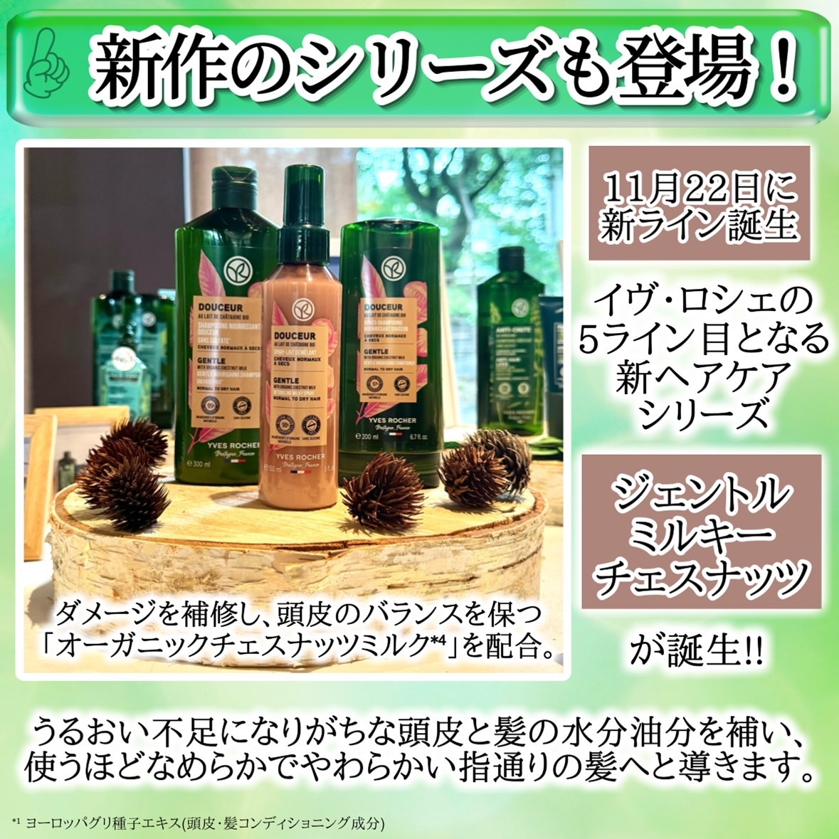 こちらはイヴ・ロシェ様よりご提供いただきました。ダメージ補修&頭皮のバランスを保つオーガニックチェスナッツミルク*配合シリーズ*ヨーロッパグリ種子エキス(頭皮・髪コンディショニング成分)✼••┈┈••✼••┈┈••✼••┈┈••✼••┈┈••...