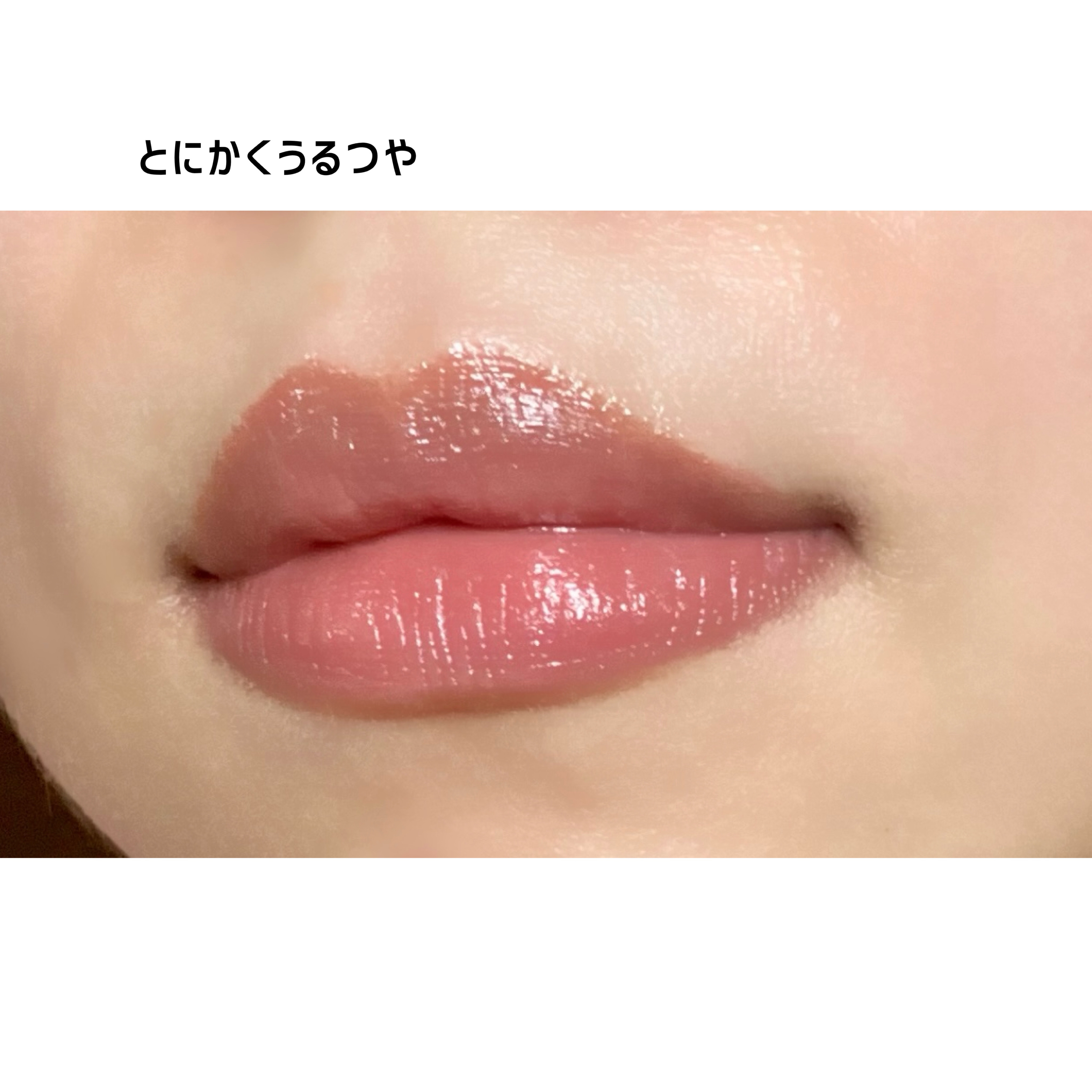 透け感発色とツヤ感仕上がり、スルスルとろけるような塗り心地が魅力。 ヒアルロン酸、コラーゲン、カミツレエキス、ローヤルゼリーエキスといったうるおい美容液成分配合。 03ピーチベージュは唇の色とのなじみがよく浮かないカラーが使いやすい。