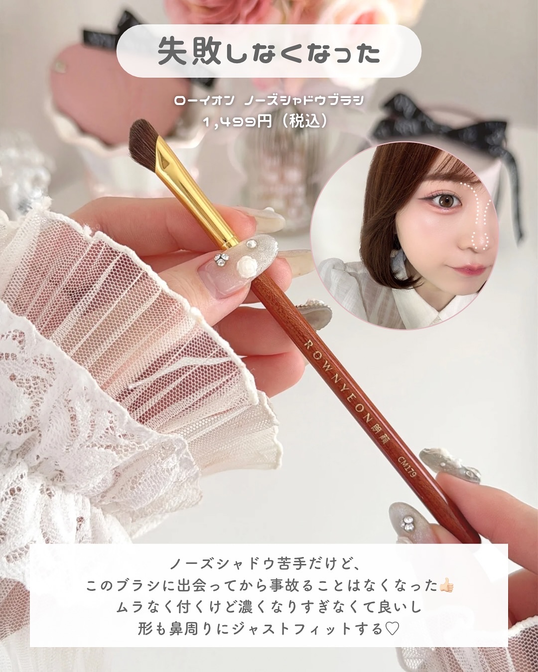 ポットタイプのスフレチークが大流行。爪の長い人は使いにくいよね?🥹 muiceから第二の指のように使えるブラシが登場。しかもお値段はなんと¥990✨ ぽわんとぼかせて指も汚れなくて、これは最高すぎる〜!!