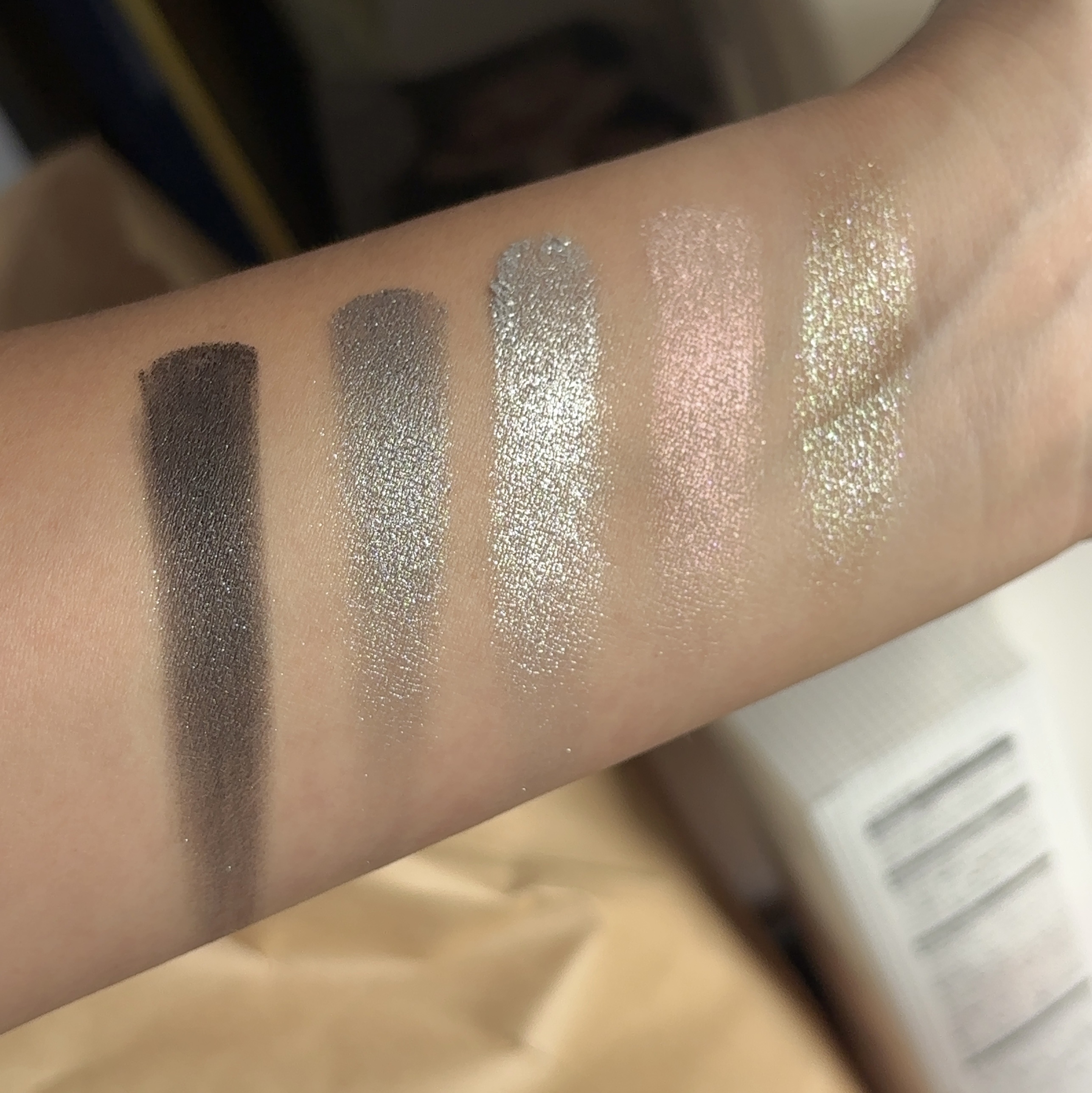 同じ秋コレサンクのシャンゼリゼと一緒にお迎えしたパレット今回のサンクの中で1番本命でした😊 右上のゴールドの偏光ラメがとても綺麗😍 左上のシルバーはメタリック感があってこれもまた良い✨ 冬にかけても活躍しそうなパレットです✨