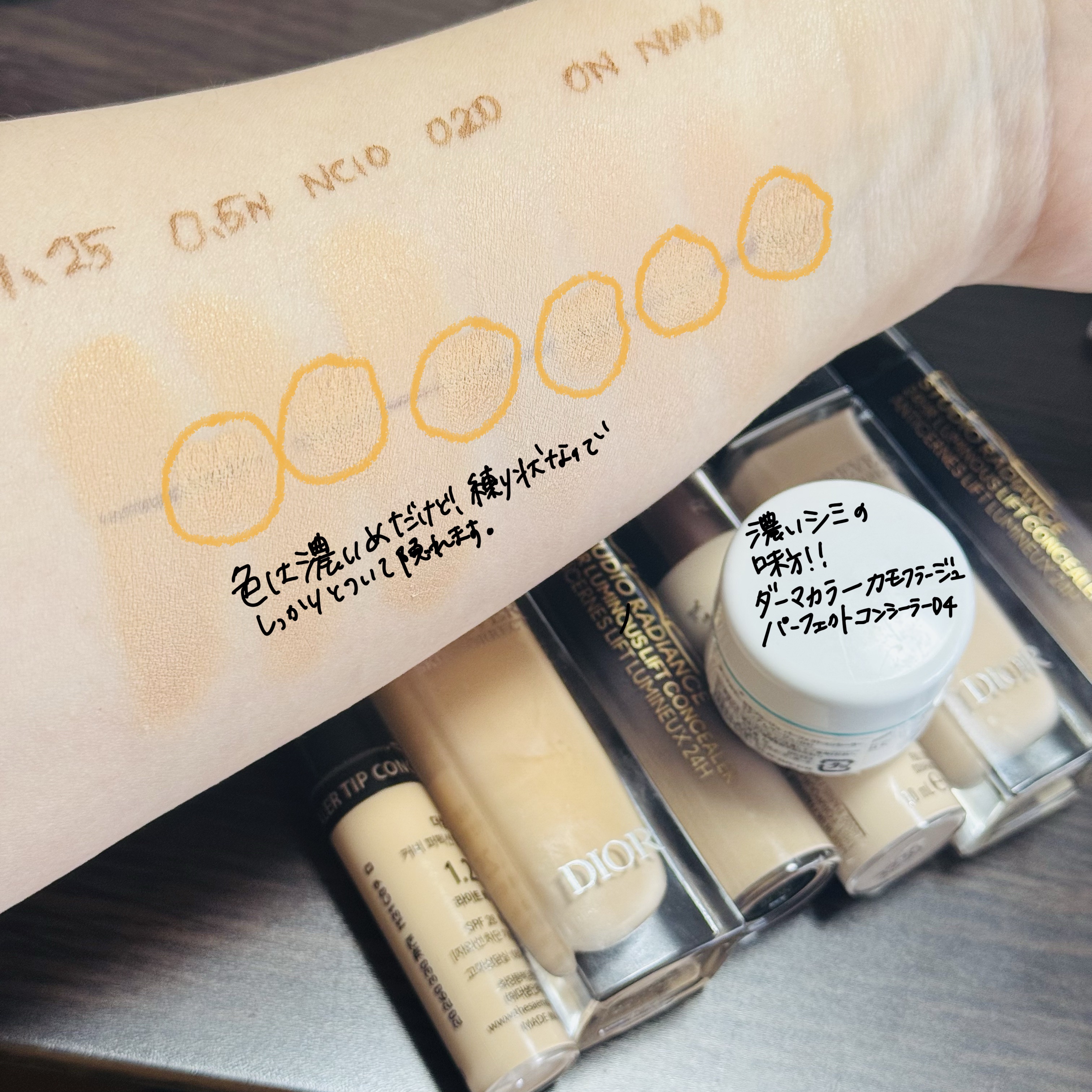 コンシーラーのカバー力比較です!結論からとりあえず!【結論】どれもしっかり馴染ませると同じくらいカバー力あり。クマ、色ムラや薄いシミなら単品オッケー👌しっかり馴染ませた時のフィット感で行くとDiorとMACが強いと感じます。濃いシミはいずれも単品ではムリ。DIORはみずみずしさの成分の相性の良し悪しが強そう。下に塗ったコンシーラーがとろけるように馴染んでしまうので重ねて塗れる練り状を探すのが大変そう。なおアイライナーも馴染んで取れてしまうほどみずみずしい。MACもみずみずしさがあるので練り状と馴染ませるときは、手の甲にとってからブラシに少しずつ乗せてトントンと優しくすると溶けにくい。(画像では直接のせたので練り状コンシーラーが馴染んでしまった)リンメルとザセムはダーマカラーとの相性は抜群。この組み合わせでしっかり隠せます。ただザセムは乾燥が気になりますね。【詳細記載】カバー力を見るためのアイライナーは、濃すぎず薄すぎずな色味のLUMIURGLAS05.サンドブラウンを選択してみました。比較してみたのは同じカラートーンであろうコンシーラーたちです。①-③が同じトーン、④-⑥が個人的ピッタリトーンです。①theSAEMカバーパーフェクションチップコンシーラー1.25¥790②Diorディオールスキンフォーエヴァースキンコレクトコンシーラー0.5Nニュートラル¥5,720③M・A・Cスタジオラディアンス24ルミナスコンシーラーNC10¥4,510④リンメルザマルチタスカーコンシーラー020¥1,650⑤Diorディオールスキンフォーエヴァースキンコレクトコンシーラー0Nニュートラル¥5,720⑥M・A・Cスタジオラディアンス24ルミナスコンシーラーNW10¥4,510そして濃いシミの味方として、練り状のコッテリコンシーラーとして❼ダーマカラーカモフラージュパーフェクトコンシーラーD4¥2,530を使っての重ね塗りもお試ししました!いずれも厚めであれば文句なしですが、当然、そのままパウダーのせても崩れるので、伸ばして馴染ませてから……となるとザセムが1番隠れます。(ザセムはその分、乾燥はする)濃いめの練り状コンシーラーを載せて、その後肌色とピッタリコンシーラーで隠す作戦で、完全にアイライナーを隠し切るとすると、Diorが相性がいい練り状を探してくるのが大変そう……と言った感想。アイライナーも溶けてしまうくらい、保湿成分として油分が入ってると推測します。そうすると、練り状も溶けますからね……MACもみずみずしさゆえにちょっと溶かしちゃう感じですが、これは載せ方で改善できそうでした。リンメルとザセムはダーマカラーとの相性よく、練り状の上にしっかり乗ってくれるので、しっかり隠せる形。プチプラでもしっかり隠れてくれるっていいですよね。#カバー力比較#ベースメイク#正直レビュー#コンシーラー