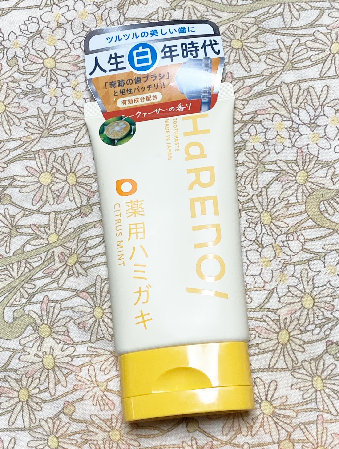HaRENO薬用ハミガキのCITRUSMINTをここ最近使って歯磨きしています!ふだんあまり泡立ちのない歯磨き粉使っているので歯を磨けば磨くほどアワアワになるHaRENO薬用ハミガキはすごく不思議な感じがしました。苦みなどきにならず爽快感少し...
