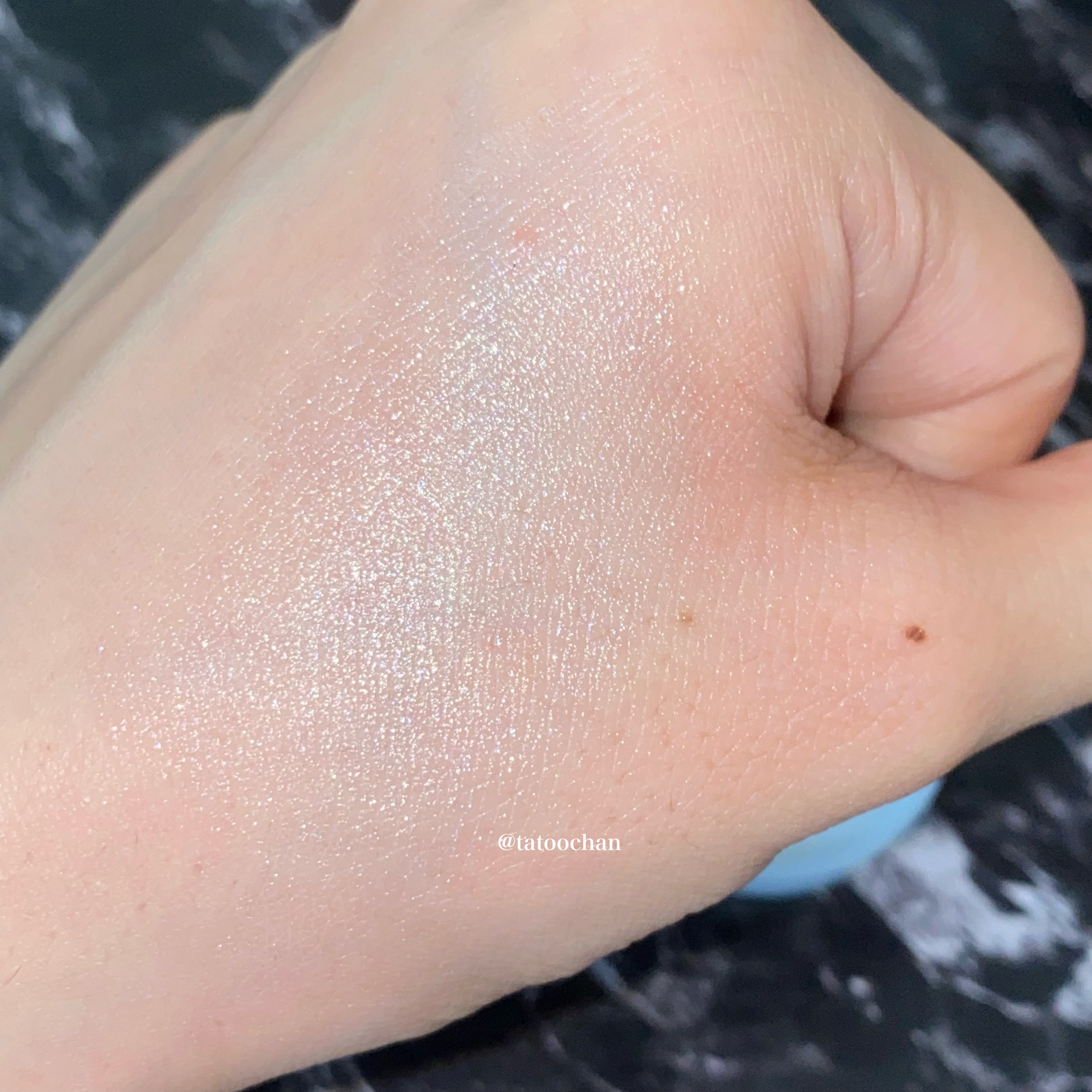 LUMMIRフラッシュポットハイライト02マリンベールブルーが鮮やかなハイライト!ジェルみたいなテクスチャーでちょびっとでキラキラします!オイルベースだから肌に塗るとしっとりしています。指先でちょんちょんと塗り広げて使っています。これからの季節にピッタリで、お顔はもちろんデコルテなどにも使えそうです。透明感、ツヤ、キラキラの3拍子揃ってます!