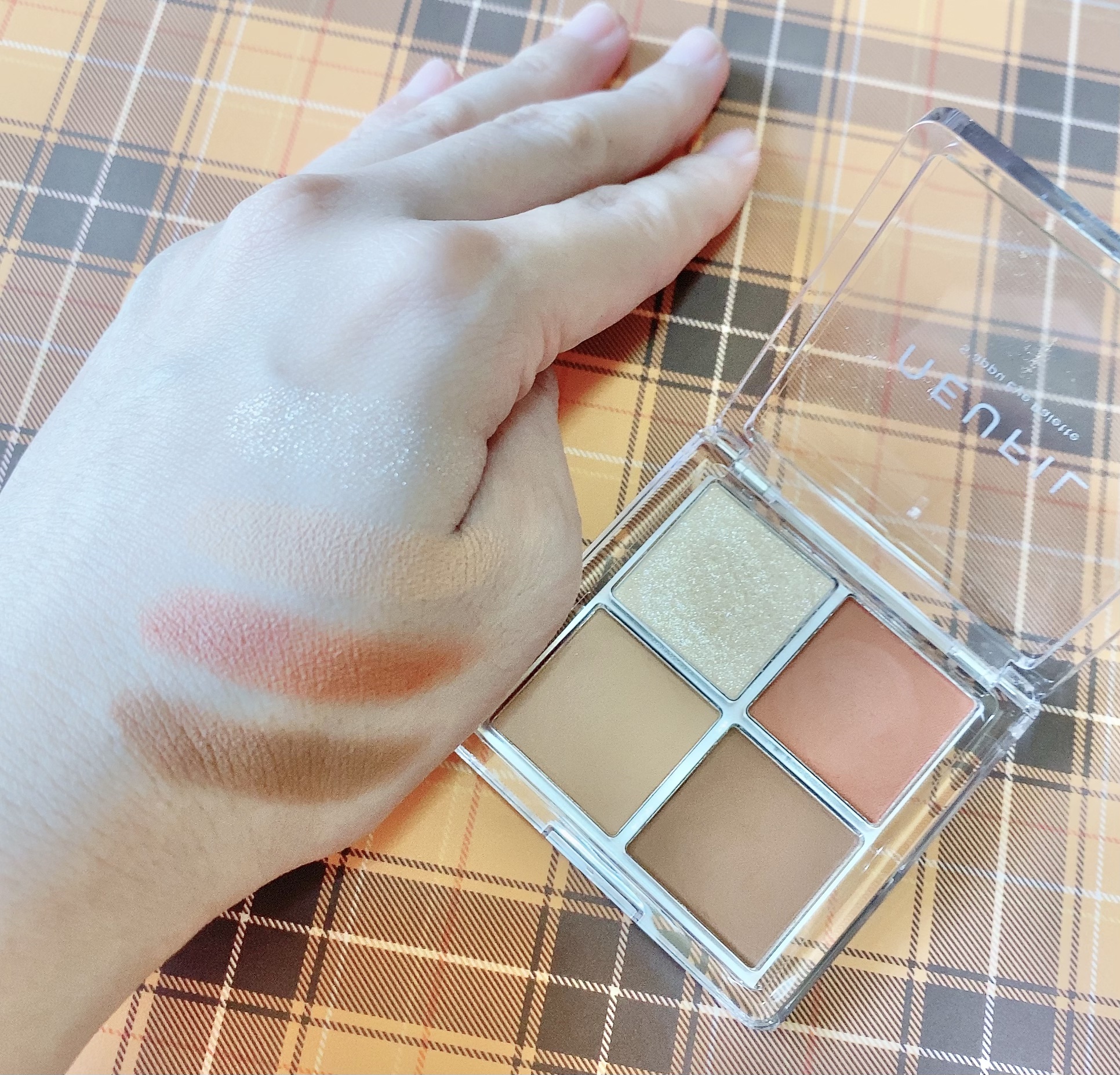 \これ999円/NEUFILアイパレ全色スウォッチ!▶︎NEUFILs’appueyepalette¥999(taxin)マットカラー3色にウェットなグリッターを組み合わせた4色パレットしっかり高発色だからグリッター以外はブラシ塗りが良さそう...