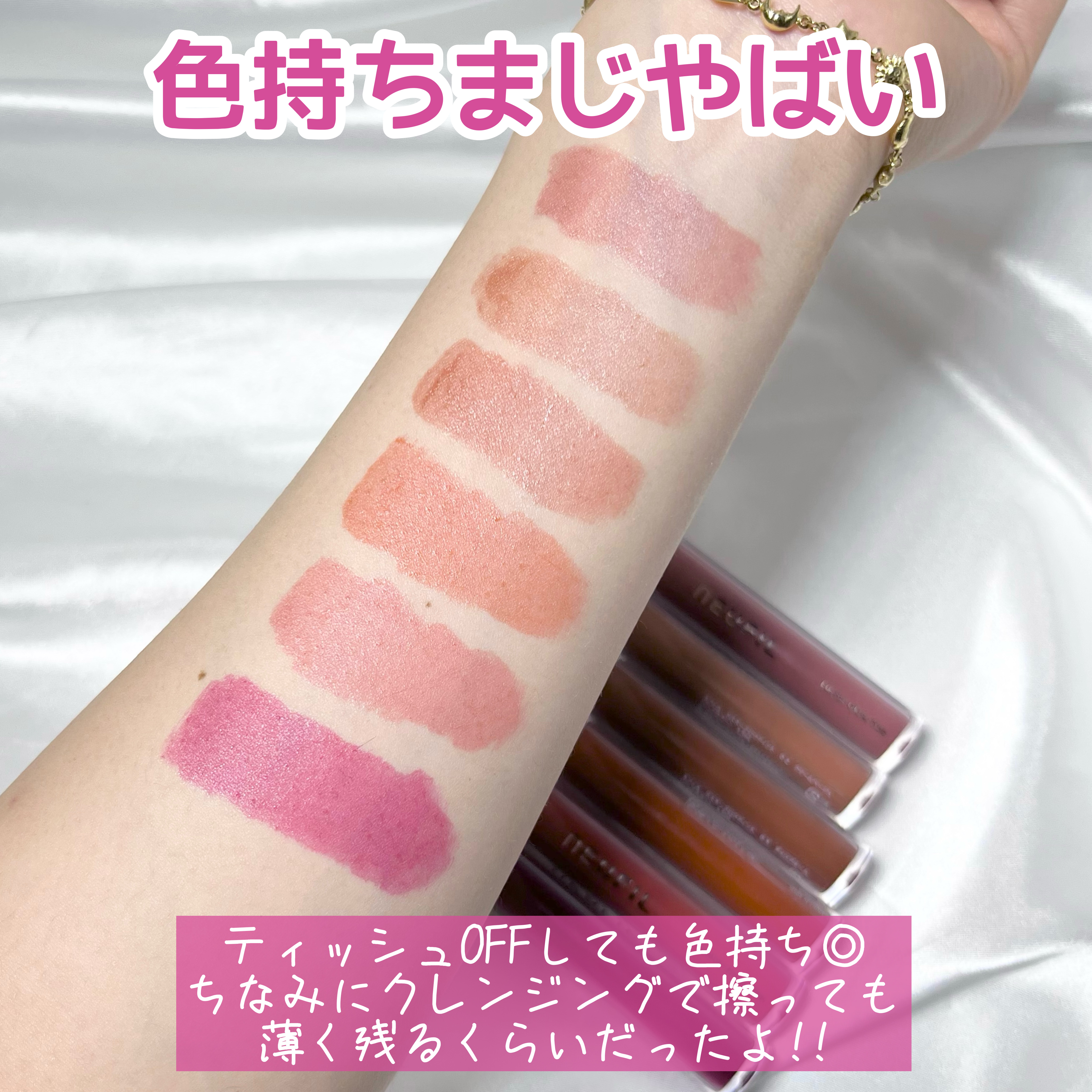 全体的にかなりお財布に優しい価格(つまりプチプラ!)なんだけど、どうなんだろう?? ただうるちゅる度が段違い!1000円以下の価格でこのうるうる、色持ちや落ち方を考えるとかなり良いアイテムかなと思います🥺❤️ 学生さんにも、コスパの良いコスメをお探しの方にもオススメできるアイテムかなと思いました🌙