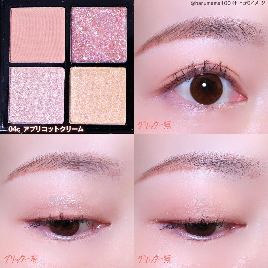 #URGLAMUGT ドリームアイシャドウパレット04cアプリコットクリーム────────────ダイソーで110円で買える4色パレット。イエベ春向きっぽい配色なんですが…薄っ😂アイシャドウベースをガッツリ仕込んでやっとツヤキラになります。注意するべき点は上段2色はみたまま発色ですが、左下のカラーはピンクベージュ系の見た目に反してイエロー〜グリーン、青みピンクの繊細ラメ。重ねるほどに薄いグリーンに近い発色。右下のカラーはイエロー系の見た目に反して青みピンク、ゴールド系の繊細ラメで重ねるほどにピンクが強くなる発色でした。110円で可愛いのクオリティは間違い無いのですが他のカラーより使いこなしにくいかも?✼••┈┈••✼••┈┈••✼••┈┈••✼••┈┈••✼#プチプラコスメ#100均コスメ#ダイソーコスメ#ユーアーグラム