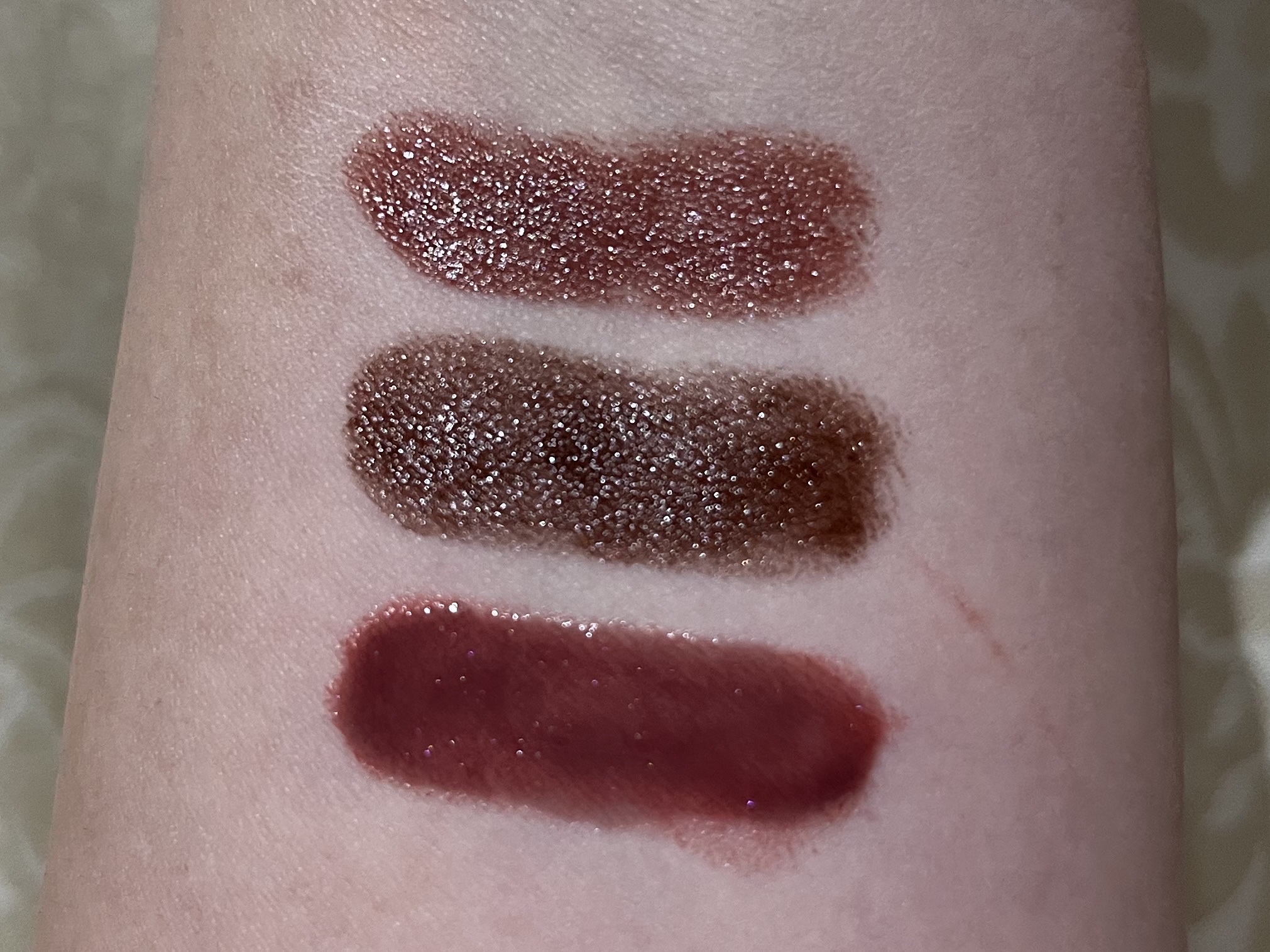 M・A•C🎄エブリデイラグジュアリーミニラスターガラスリップスティックトリオ💄ニュートラルスウォッチ上から・トープティア:ピンクブラウン・ファッジザナンバーズ:赤み無しブラウン・リッチインローズィズ:コーラルピンクどれもシアーで滑らかな塗り心地と発色で"ニュートラル"というだけあってとても使いやすいセットです。わたしには、リッチインローズィズだけどうしても似合わずでしたので、fweeの黒グロスなどでニュアンスチェンジして使おうかな…と思います。※画像5枚目どのカラーもパールがさりげなく入っていてとても可愛いです。グロスを重ねるとパールが更にチラチラしますミニサイズで持ち運びもしやすいのでレッドの方も買えば良かったかな…?と思っていたりします。誰かの参考になりますように🙇🏻