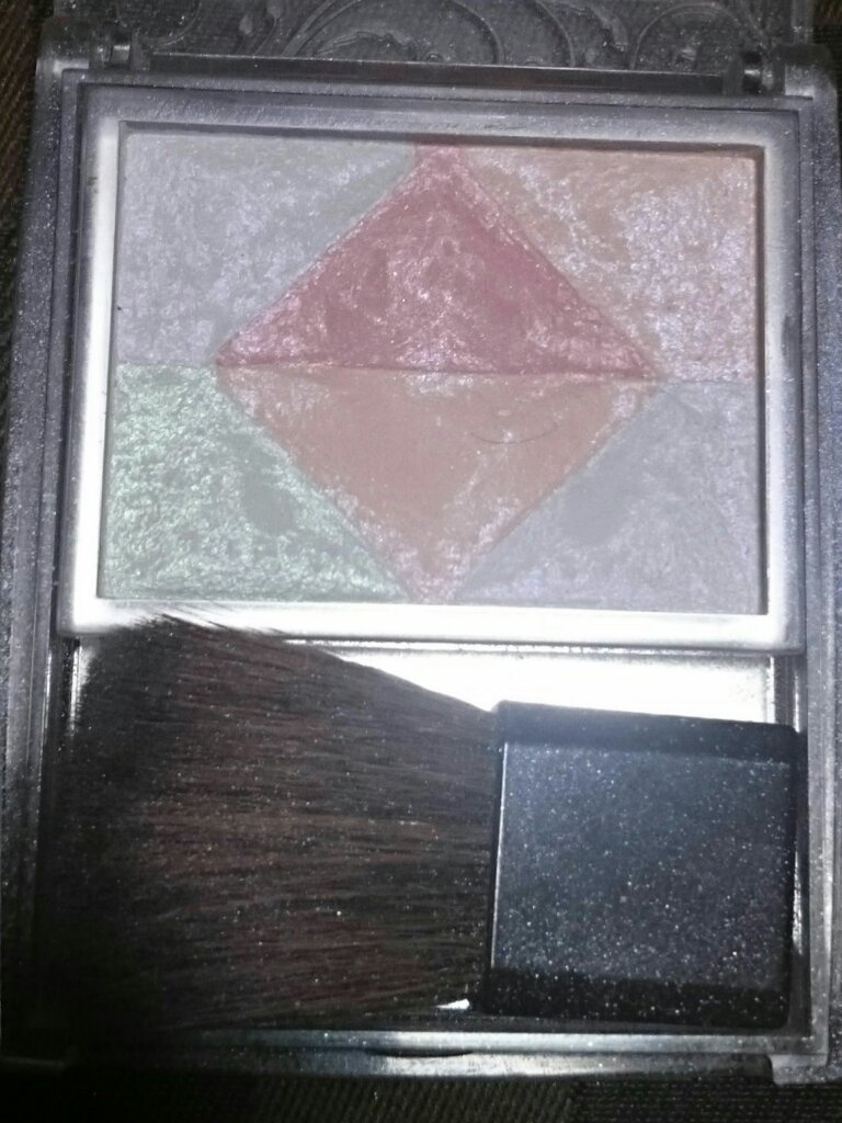 粉質はややしっとりでさらさらです。 指でも筆でも結構粉飛びします。 1色1色の色味が凄く可愛くって特にグリーンのハイライト✨ ピンクベージュと混ぜて鼻のハイライトに使うと可愛かったです😍 オススメのハイライトはキャンメイクのむにゅっとハイライターの04です。 水色のハイライトで、青白くならないのに透明感がでてほんの少し乗せるだけでもキラッと輝いてくれます。