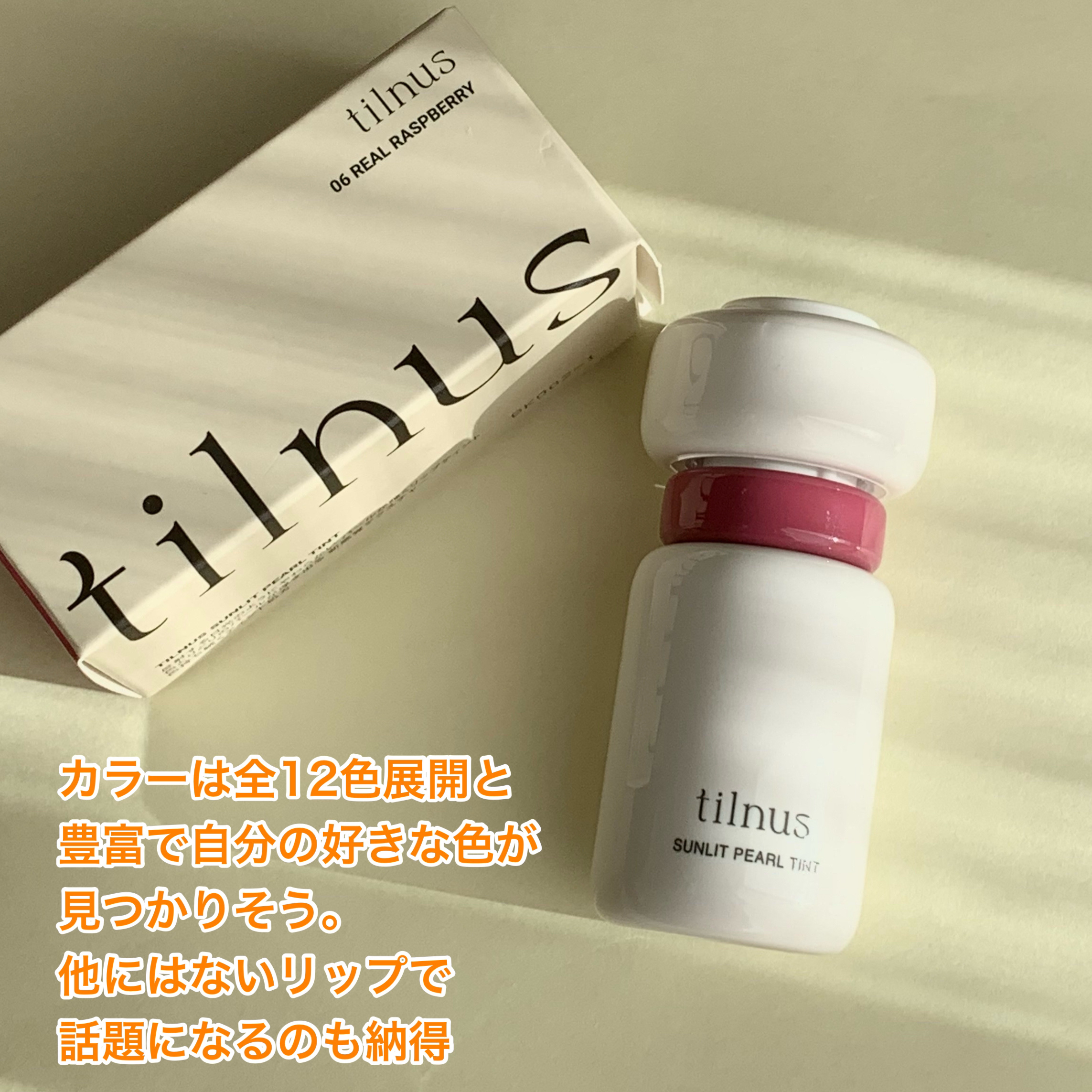 “TILNUS”は、透明感と自然な輝きを重視した新コスメブランド💄 日常使いしやすい色合いとトレンドを意識しつつも、どんなシーンにも合わせやすいナチュラルな仕上がりを目指しているそう✨💖 “サンリットパールティント”シリーズは、塗るとパールが浮き上がってきて、繊細なツヤとほどよい透け感が特徴 唇に馴染み、厚塗り感がないのにちゅるんとしたツヤ感を演出 06リアルラズベリーは、ほんのり赤みのあるピンクベリーカラーで、顔色を明るく見せてくれる華やかカラーなのに優しい色💕🌷