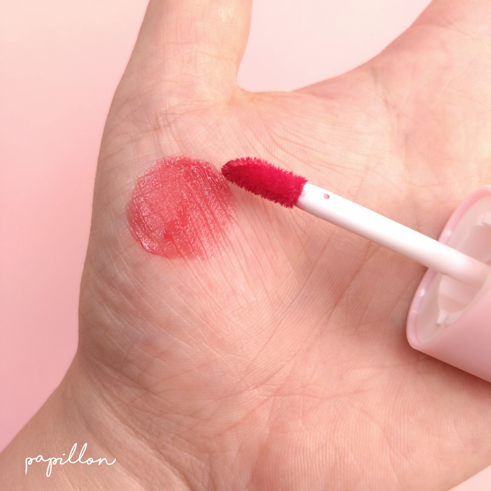 ヴィーガン処方の植物性オイルが入った被膜感を感じない軽やかな付け心地でしっとり質感ティントタイプのリップ&チーク 苺キャンディーみたいな甘酸っぱい香り 落ちにくいティントタイプだから付けたてのキレイ色を保ち、艶が取れてもじんわりとした色合いが残って、潤いコーティングされたみたいなしっとり使用感