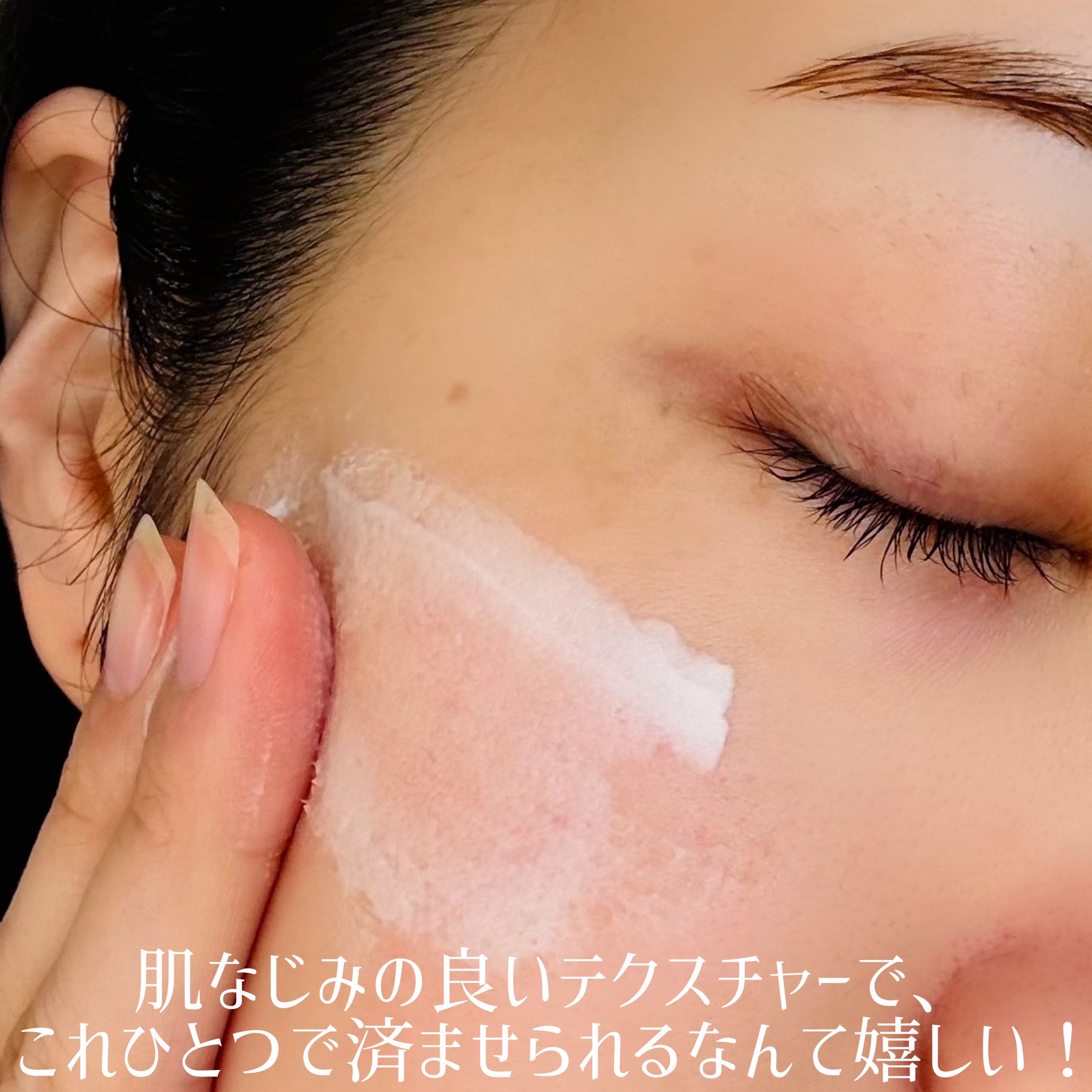 朝のスキンケアを拭き取り化粧水とこれ一本で終わらせてますスフレのようなテクスチャで、硬そうに見えて伸びの良いクリームです水分感が少しあって、ベタつかないのですぐメイクできます保育園の送りで朝はバタつくので、日焼け止めとパウダーファンデでベース...