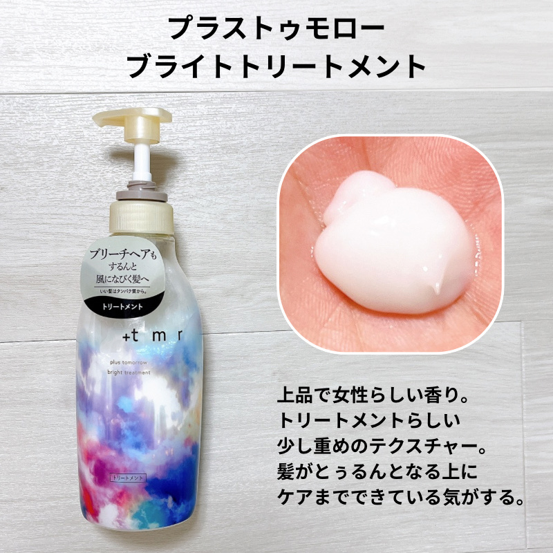 今までパンテーン、LUX、&honey、などドラッグストアに置いてあるシャンプーほぼ使ってきたけどこの+tmrは私の髪にとても合ってました!ようやく自分に会うシャンプーに出会いました!日中乾燥を感じにくくまとまりを感じましたヘアミルクもあるら...