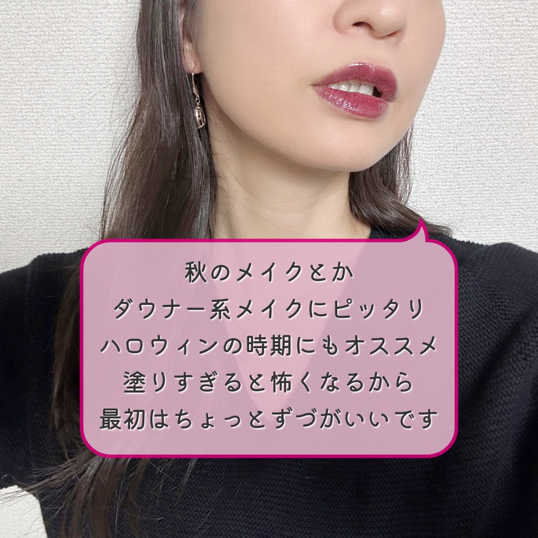 甘さ控えめダークなベリーカラーが印象的💜🖤 黄色みというよりは、深みのある赤みと青みを感じる。 しっかりと深みカラーをキープしていました。だから、食事会やデートの時に活躍しています🩷 少し甘めの香りがするところも好き💕 他の色も欲しいな〜!