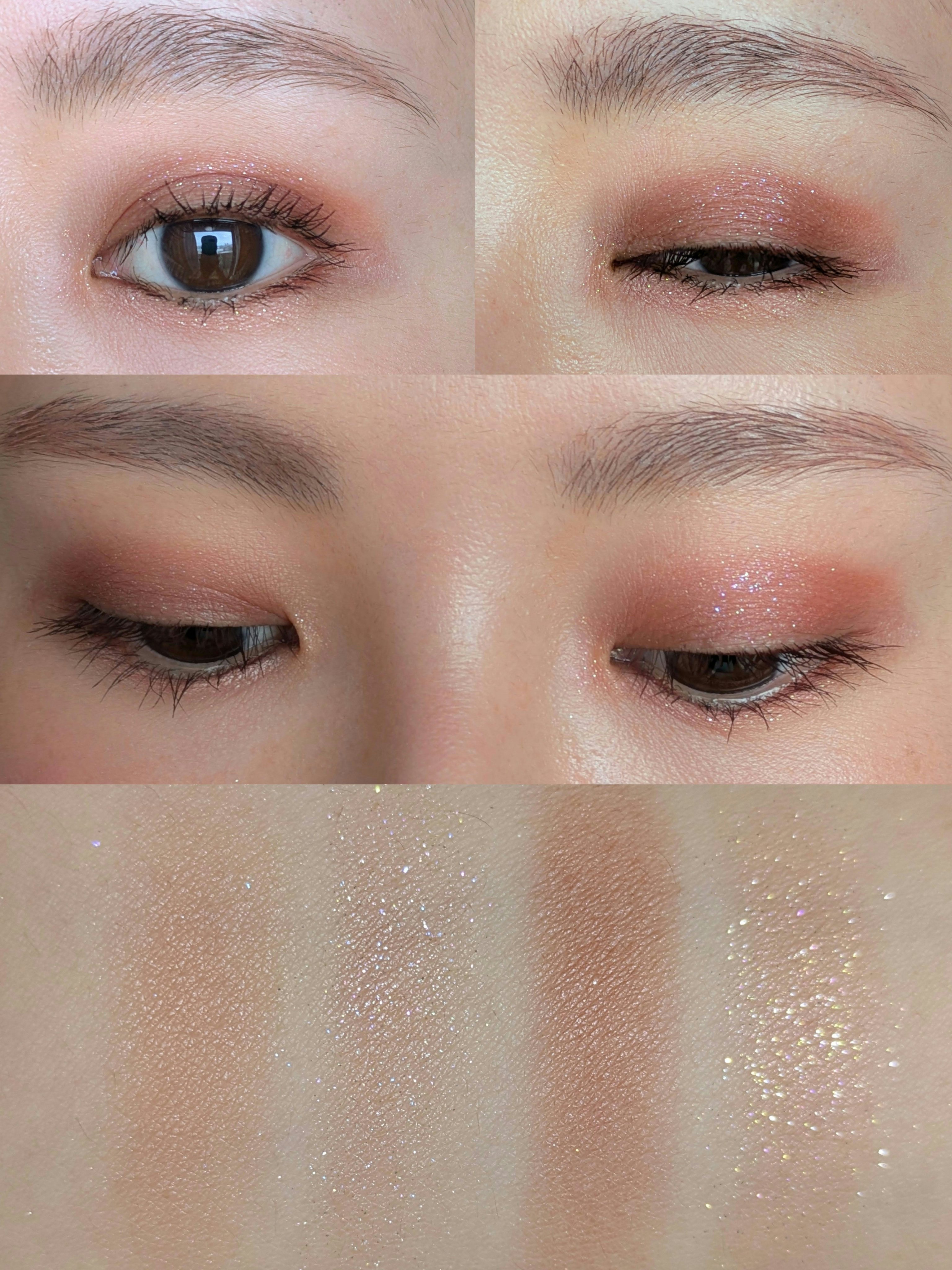 今更コスメ(笑)CelvokeセルヴォークヴァティックアイパレットEX12デュアリティ限定色以下公式情報より2024年10月16日(水)発売のHANKYUBEAUTY限定マニッシュに、センシュアルにと自由に表情を彩り、マットな質感、様々なパール質感のコントラストが多面的な魅力を演出。ブルーを忍ばせたグリッターパールの煌めきで、透明感を底上げしつつ、甘さを抑えた抜け感を。赤みを含んだマットなベージュトーンとの融合で、華やかさと穏やかさを併せ持った表情に。ブライト春の私にとって毎度Celvokeのアイシャドウはくすみが気になって手を付けられずにいたけどこのパレットはウォームトーンとラメのバランスが良くてひと目見たときから気になってました🥺とあるサイトの半額セールで発見し購入。結果として買って良かった❣️サラッとした粉質で発色は調節しやすく粉飛びしない◎発色は見た目より透け感が出るこのパレットはラメがとても綺麗!右下のベージュピンク×青みラメが特にお気に入り💓マットカラーがやはりくすみを感じさせるけどラメで誤魔化せるので問題なく使用できた今回は右上のカラーを上瞼の目頭と目尻にしっかりと入れて左のカラーを瞼中央に載せてヘイローを意識。右下のラメを上瞼の中央に載せて立体感を演出。下瞼は右上を目尻、左下を目頭から2/3くらい載せて左上を中央に載せました。