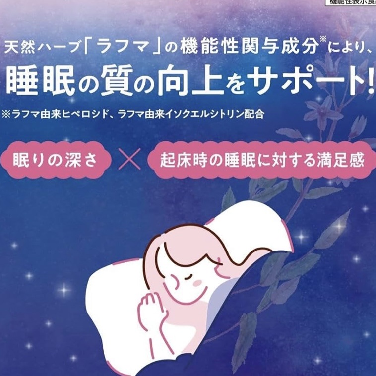 天然ハーブ「ラフマ」由来のヒペロシドとイソクエルシトリンを含む機能性表示食品✨✨ この成分は、眠りの深さや、起床時の睡眠に対する満足感の向上に役立つみたい😮 ドリンクタイプはラベンダーピーチ風味だから、飲みやすい🎶美味しかった! 最近よく寝れないな〜と思う人は是非試してみてね🎶