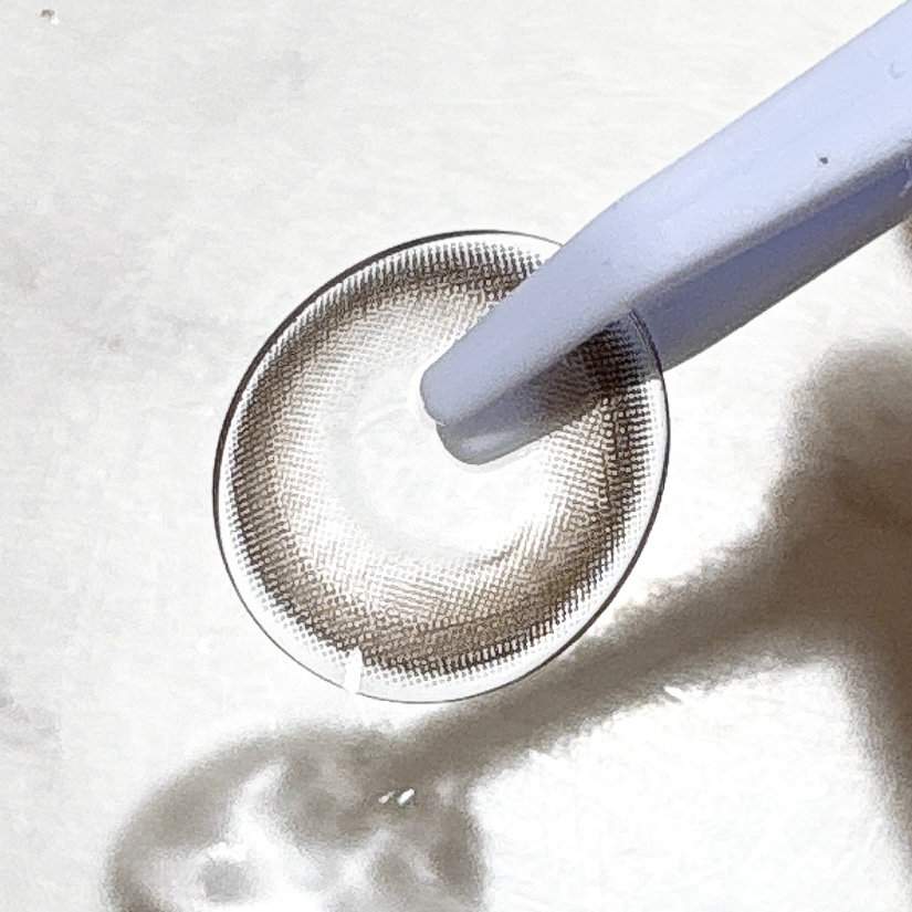 太フチ×水光感できゅるんと盛れる、るなちゃんプロデュースのカラーです💫 内側のカラーがほんのり透明感を与えてくれて 重たくなりすぎずに使える.ᐟ 水光デザインはとってもさりげないので 左右でずれても気になりにくいです◎ ちょっぴり色素薄めでピュアな雰囲気の きゅるんと大きな瞳に𓈒𓂂𓏸 なじむベージュカラーのおかげか 意外にもナチュラルで使いやすいです!🥰 ほんのり光が入った ダークトーンの瞳があざと可愛い...! 地雷系や量産型っぽいメイクにも合いそう!♡ どちらのカラーも派手すぎない発色で、あざとく仕上がるレンズでした🫶🏻