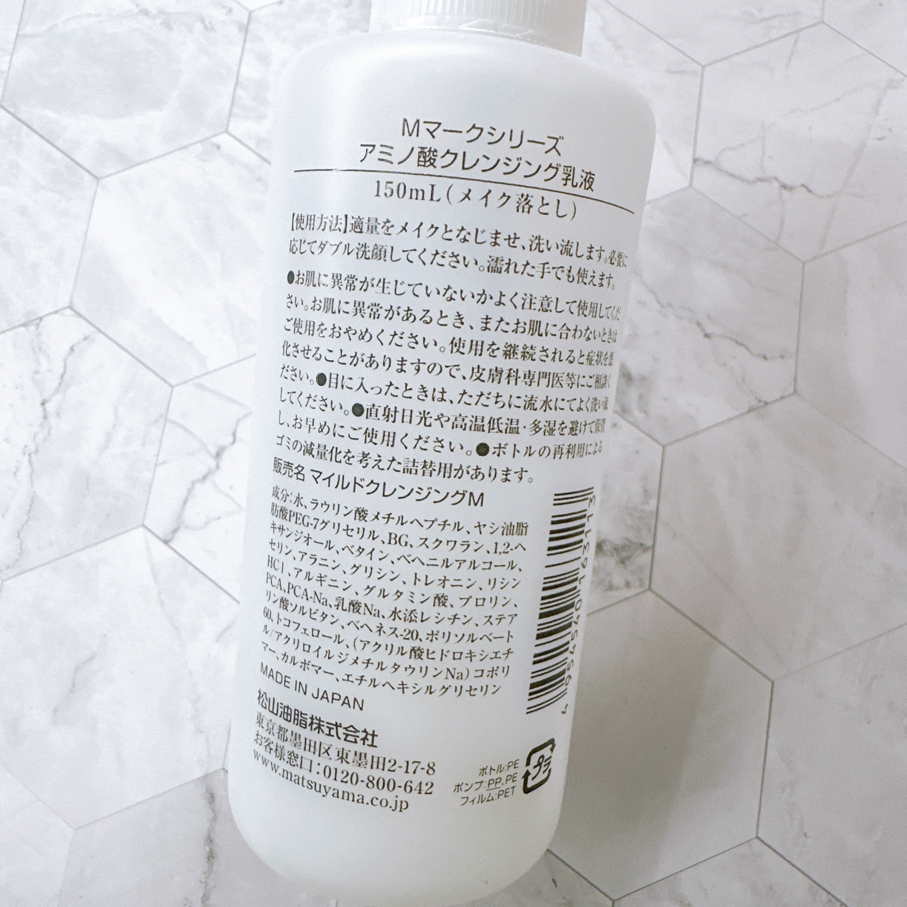 こんにちは😊松山油脂のアミノ酸クレンジング乳液使い切りました。普段あんまり濃いメイクをしないのでミルクくらい優しく落とせるクレンジングをよく使います🥛乳液が思っていたよりも少しかためかなと感じましたが洗い心地も申し分なく、薄いメイクなら充分だ...