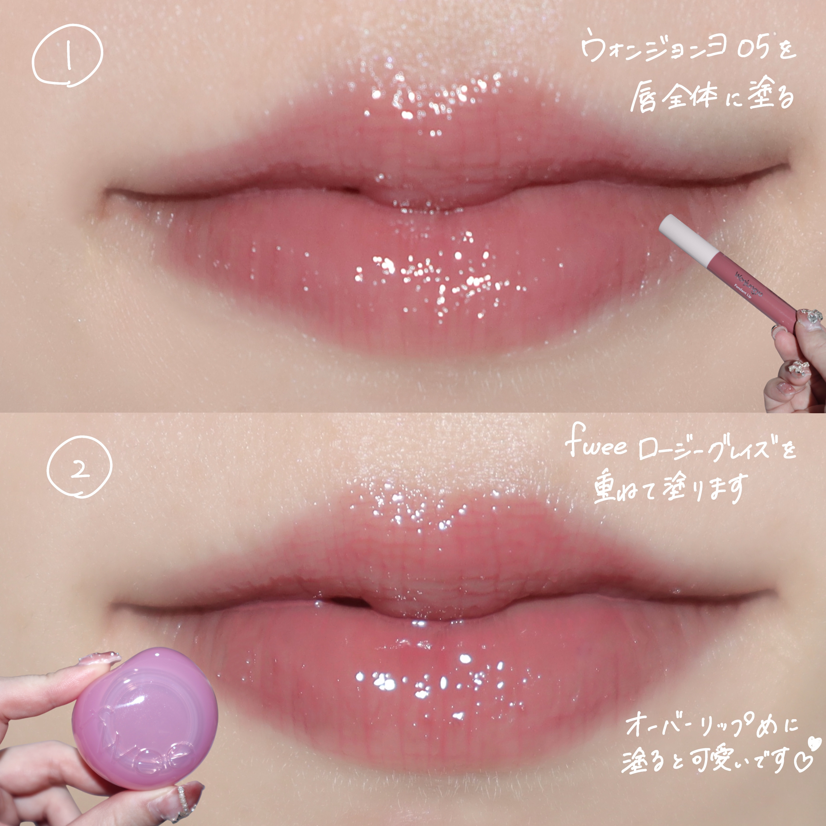 天才的に可愛いリップの組み合わせを見つけたので紹介したいと思います⋆꙳𝜗𝜚꙳.* この2Stepでちゅるんとした粘膜ローズリップの完成です👏🏻⟡ fweeのロージーグレイズをオーバーリップめに塗ると立体感のあるちゅるんとした唇になれるのでお気に入りです🤍