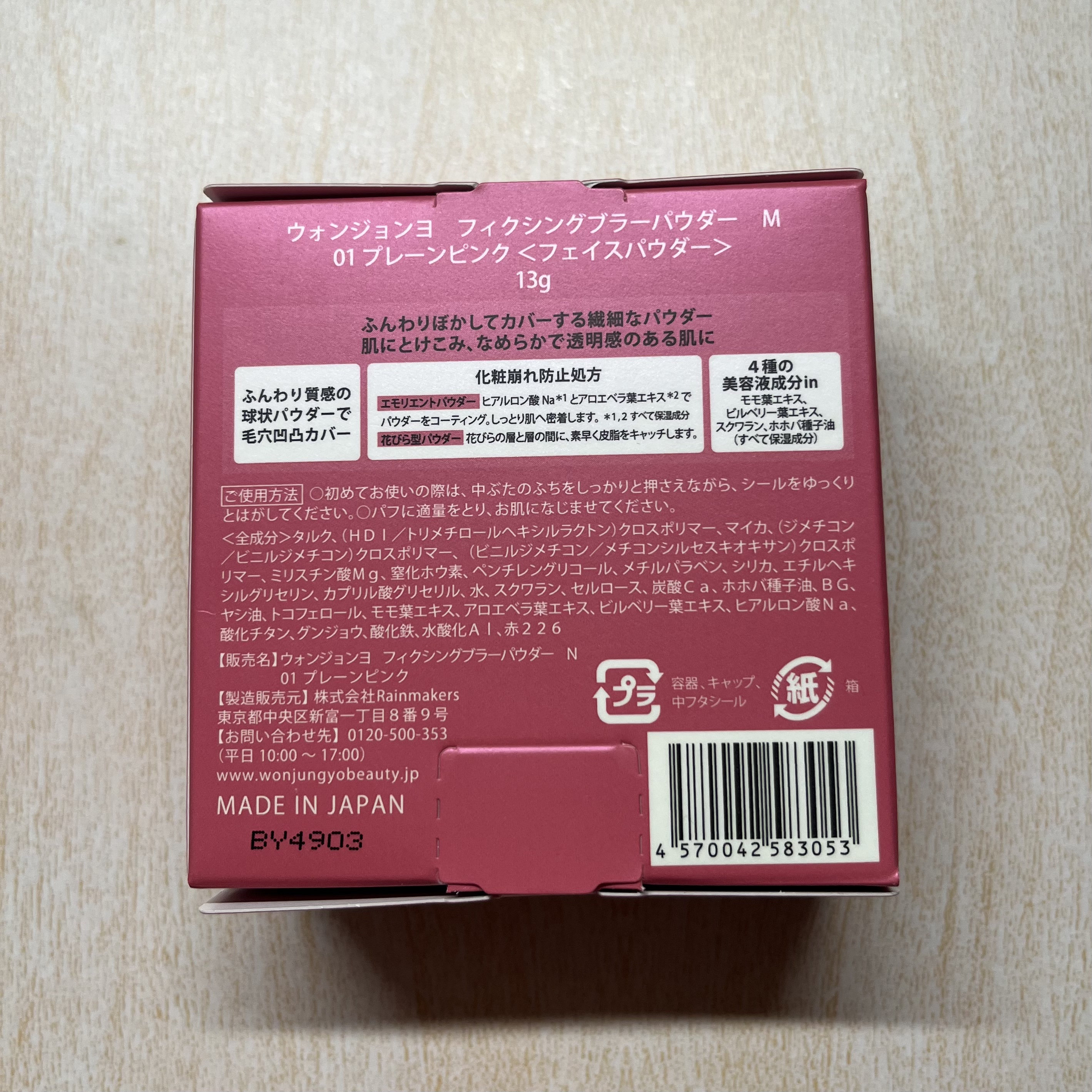 冬でも紫外線対策抜かり無くしたい 乾燥が気になってメイクに悩む Wonjungyo ウォンジョンヨ フィクシングブラーパウダー N 01 プレーンピンク TWICE MOMOコラボ限定パッケージ 使ってみるとしっとりサラツヤパウダーで今の季節に無くてはならない存在に🥹✨️
