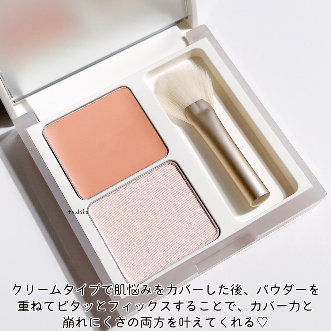 密着クリームテクスチャー もっちりとしたクリームが肌に密着&肌悩みカバー。 付属の扇型ブラシが優秀でふわっとパウダー塗布できた! コンシーラーはとろけるような柔らかさで厚塗りにならずカバーできた!