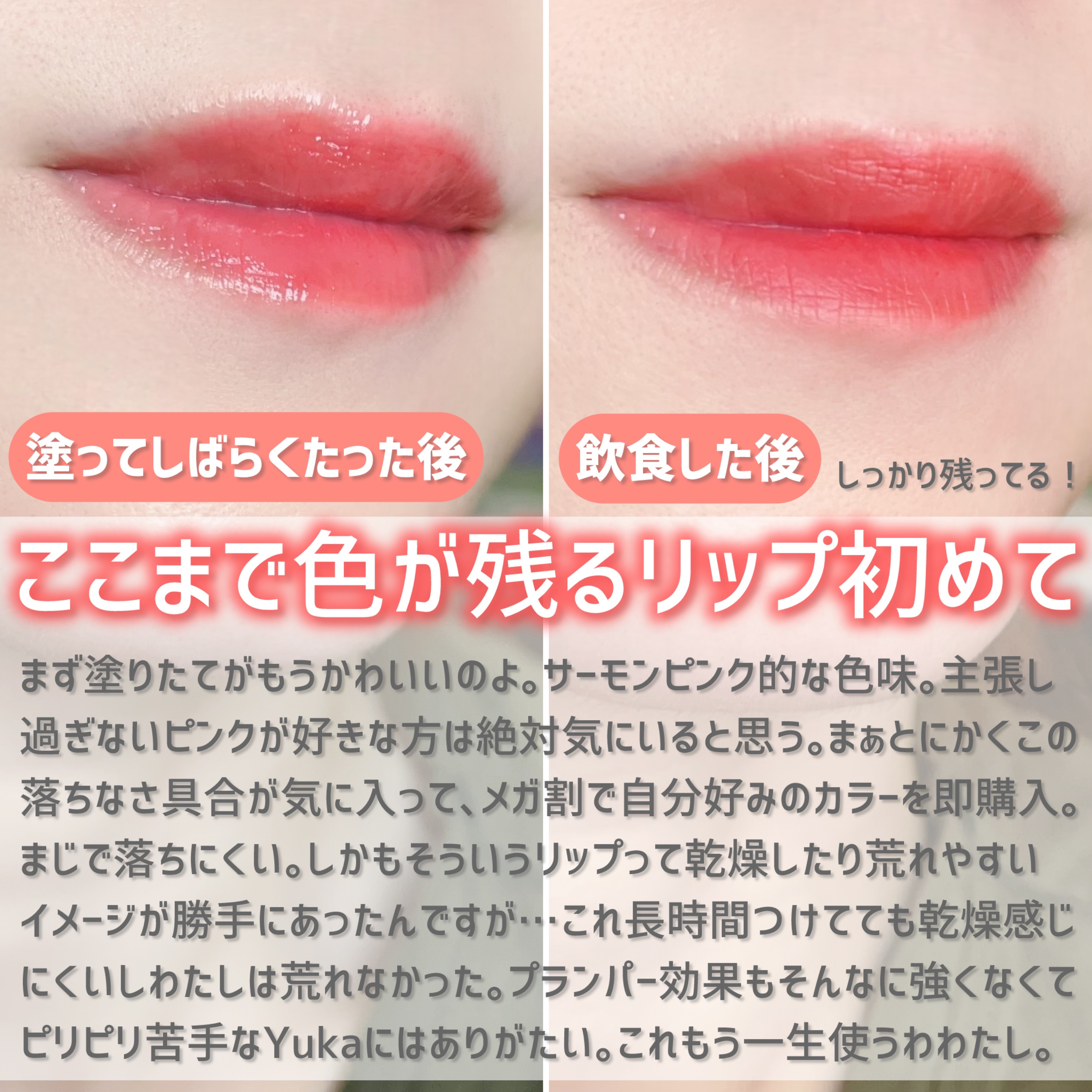 *第1回!落ちにくいリップ選手権!の巻*りぼんウエハースに奔走するYukaですどうも。はい。皆様どうも。昨日、ローソン限定でりぼん70周年ウエハースコレクトボックス、というものが発売されまして。過去から現在までのりぼんの表紙がトレーディングカードとなって発売。ランダム封入で計30種類。これは…その昔のりぼん愛読者には震えるカード!!!いやぁ…めちゃくちゃ散財。買って帰って。開けて。次女が更に欲しいと言うので買いに行き。翌日長女も欲しいと言うので買いに行き。何回ローソン行くん!!!!うわ、また買いに来とるわ…と思われたでしょうね。仕方なし。とまぁそんなこんなで3人合わせて数十個購入(買い過ぎや)レアや欲しいカードがたくさん出てキャッキャする娘達を横目に…わたし…1枚も欲しいカード出ず。え、そんなことある!?そんな引きの悪さ持って生まれてきてたん!?自分の運の無さを呪いながら、今日も元気に生きています(悲しい)はい、ということでね。気を取り直して本題に入りますかね。本日お話する商品はコチラ!!【TPSYJUICYLIPPLUMPER】はい!TPSYのリップでございます。こちらね、9月の上旬頃だったかな。ご提供頂いて初めて使ったんですが。ちょっとあまりに良過ぎて。引くぐらい良過ぎて。こ…これは…他の色も欲しい!!!!となってちょうどメガ割中だったこともあり即購入。購入したカラーは#08FEELMOREイエベ大好きカラー。サーモンピンクっていうのかな。コーラルピンクかな。柔らかなピンクなんです。パキッとした色味がちょっと苦手な方や柔らかな色味が好きな方は大好きだと思います。塗った後のちゅるちゅる感も大好きなんですが。このリップの1番の推しポイントはまっっっじで落ちにくい。今まで色んなリップ使ってきたけどどうしても飲食したりするとほんのり残ってるかな、、って感じのものが多かった気がする(あくまでもYukaの体感として)でもこれ、え、ほんまに飯食ったんか!?(口悪いよ)っていう位に色味が残ってて。初めて使った時ほんとびっくりした。仕事してると、なかなかリップの塗り直し出来ないからこういうのほんとに嬉しい。こういうの探してたんよぉぉぉ!!ってなった。しーかーも。1度ティッシュオフすると色移りしないからマスクつけてても色が付かないっていうね。こういうの探してたんよぉぉぉ!!(2回目)乾燥を感じたり、荒れたり、ということもわたしは特になく。水分たっぷりのコンディショナー成分が79%配合されてるからなんかな。つけてても不快感なく、超快適。冬になってもし乾燥してもこの上から安心してリップクリームぐりぐり塗れるから(優しく塗ってや)嬉しい。こういうの探してたんよぉぉぉ!(しつこい)個人的には落ちにくいリップとして今のところYukaの中でぶっちぎり1位獲得。好き過ぎる!!!!!!っていうリップに出会えて幸せ。というお話でした。良かったらQoo10チェックしてみてくださいね。さて。はぁー。もっかい行こっかな。ローソン…(絶対また来たでって陰で言われる)天ないもご近所もママレードもハンサムも姫ちゃんもこどちゃも欲しい!!!!(わかる方は多分同世代)#Yukaの購入品#TPSY#リップ#ティント#プランパー#落ちにくいリップ#色味長持ち#こっくりカラーに夢中