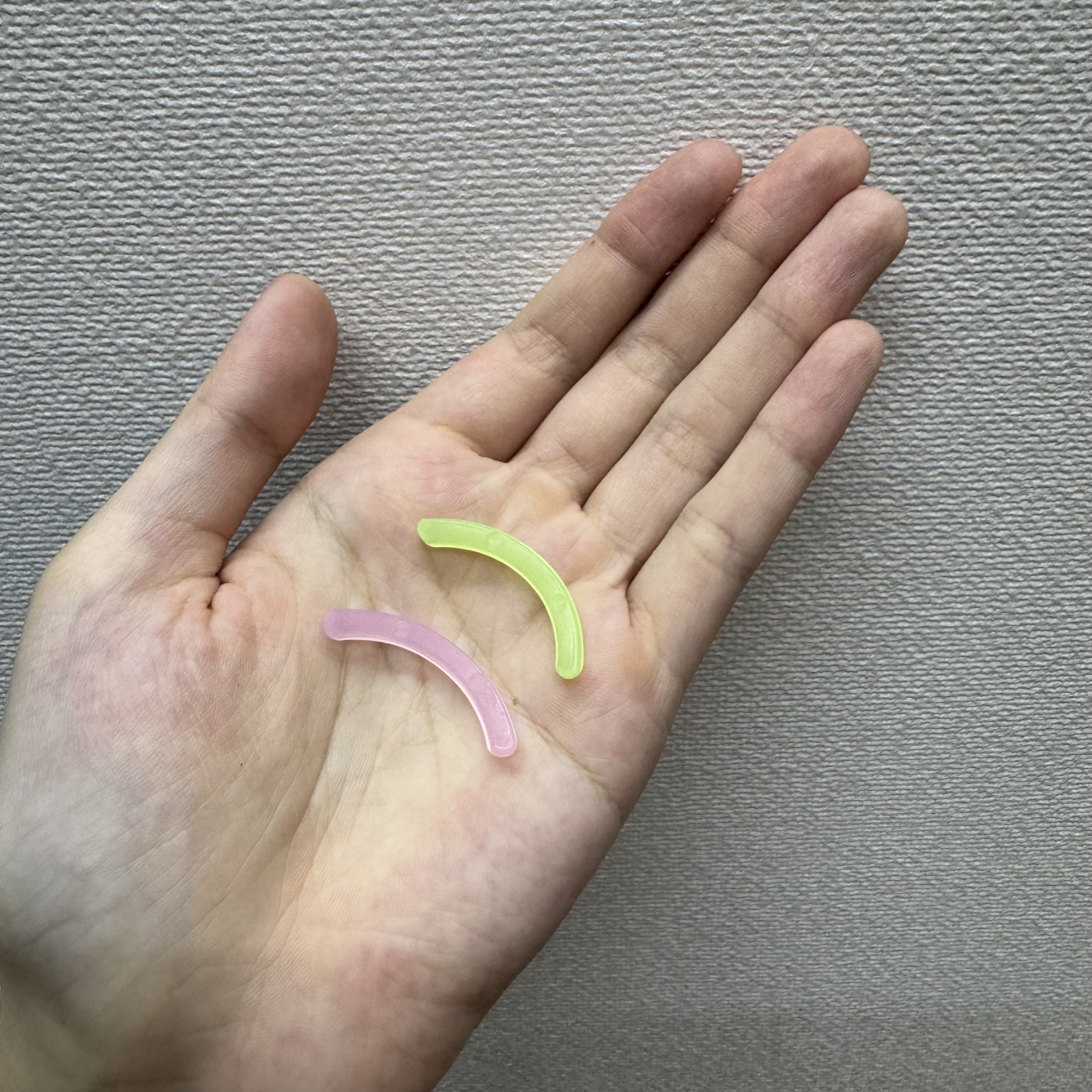 ビューラーの上部のまぶたにあたるところが普通のビューラーより広めで、まぶたを持ち上げてまつ毛を挟みやすい形状。 替えゴムが2つ付いていて、それぞれ色違いなのが可愛い!どうせなら白より色付きの方が可愛いし、替える時に気分転換になるのが嬉しい♪