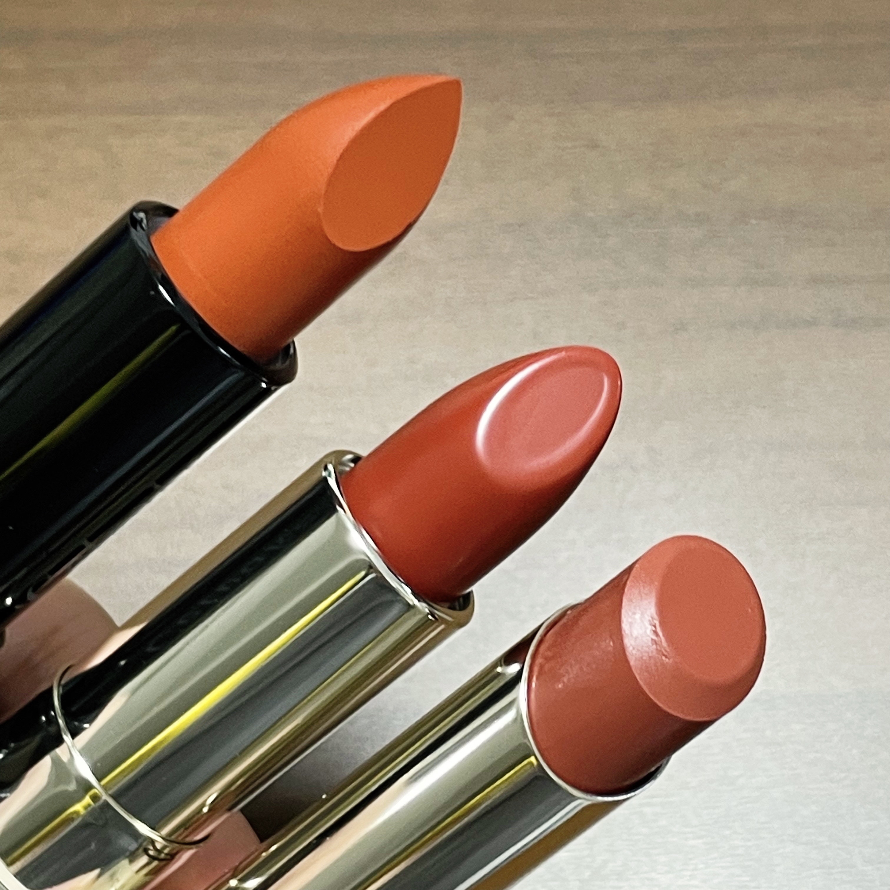 2・3・4月の購入品🌸🟠GUCCIグッチルージュドゥボーテブリアン514バージニアスカーレット(写真1・2枚目)4月からの新年度に合わせてお迎えしたリップです💄鮮やかな赤色で、塗ると顔色がパッと明るくなります✨色持ちはあまりよくありませんが細身で塗りやすく、唇が荒れたり乾燥したりもしませんでした。重厚感のあるゴージャスなパケもお気に入りなので、お出かけの時にたくさん持ち歩こうと思っています👜🟠SUQQUザプライマー(写真3枚目)ファンデーションキットに入っていたこのプライマーのミニサイズを使い切ったので、今回現品を購入しました。これを使うと顔のくすみがなくなり、ハリ艶のある端正な肌に仕上がるのでお気に入りです🙂SUQQUのファンデーション以外にシュウウエムラのファンデーションやYSLのファンデーションなどとも一緒に使っていますが、もろもろが出てくることもないので、割とどんなファンデーションとも相性はいいのかなと思います。🟠CLARINSリップオイルバーム07ペタルヌード(写真4・5枚目)パケがかわいらしくて購入した、この春の限定色です🌸公式ではピンクベージュと書かれていますが、塗ってみると色味は思ったよりブラウンだったので驚きました👀思っていたピンクベージュとは違いましたが、この色はこの色でかわいいので満足しています⭕️リップオイルバームというだけあって保湿感はしっかりあり、軽いつけ心地なので軽くメイクしたい日にぴったりです。🟠Celvokeディグニファイドリップス09テラコッタ(写真6・7枚目左と写真8枚目)フォトウェディングの際にヘアメイクさんが使用してくださったリップの一つで、この色があまりに綺麗だったので撮影後に思わずブランドと品番を聞いてしまいました(笑)すぐに購入して自分でも使ってみてお気に入りリップになったので、限定パケが出たタイミングでもう一本購入しました💸落ち着いた色味ですが暗すぎないので、どんなメイクや服装でも合わせやすく、まさに万能リップだなと思います。色持ちは良いわけではありませんが、塗り直しても唇が荒れたり汚くなったりもしません。この色のリピはもちろん、他の色も購入したいと思っています!🟠RMKザリップカラー05デディケイション(写真6・7枚目真ん中)こちらもフォトウェディングの際にヘアメイクさんが使用してくださったリップの一つで、おしゃれなレッドブラウンの色味のリップです💄艶すぎずマットすぎずどの場面でも使いやすい質感で、これを塗ると大人っぽい印象の顔になれるのでこちらもお気に入りです✨RMKのリップといえばデューイーメルトリップカラーしか知りませんでしたが、こちらのリップも良かったのでまた購入する予定です。🟠RMKデューイーメルトリップカラー03シャイハート(写真6・7枚目右)ZOZOTOWNに在庫があったので、06と10に引き続き3色目を購入しました。03は少しくすみのあるピンクの色味で、季節問わず使いやすい色味です。相変わらず使いやすいリップでどこでも大人気ですね…10のストック分や他の色もどこかのタイミングで購入できるといいなと思っています!相変わらずリップばかり買っています👛そろそろリップが増えすぎているので一旦整理しつつ、自分が10本(10種類)までしかリップを選べないとしたらどれを残すか…などをちょっと考えてみようと思っています👀#コスメ購入品レビュー#コスメ購入品#GUCCI#グッチ#SUQQU#スック#CLARINS#クラランス#celvoke#セルヴォーク#RMK#春コスメ購入品レポ