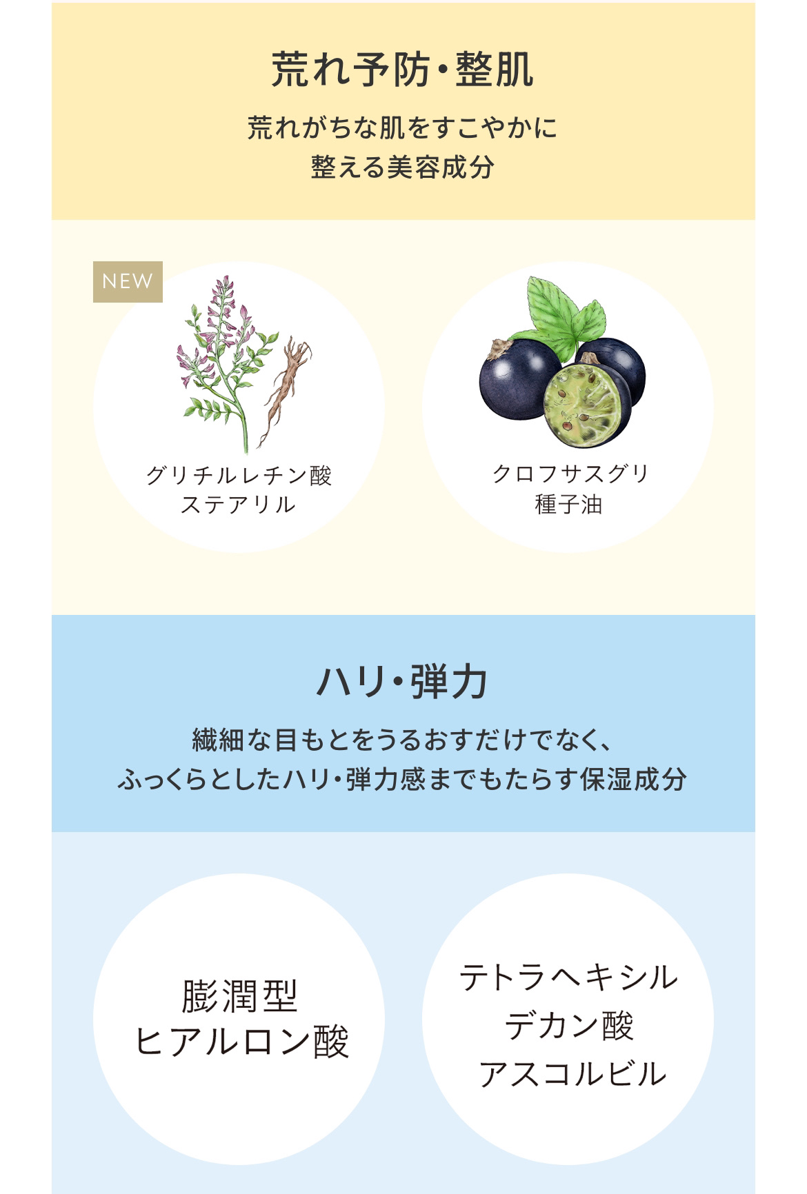 - ステアロイルオキシステアリン酸オクチルドデシル、ダイマージリノール酸ジ( イソステアリル/フィトステリル)、ラウロイルグルタミン酸ジ( フィトステリル/オクチルドデシル)、コハク酸ジヘプチル、シリカ、キャンデリラロウ、トリベヘニン、オリーブ油脂肪酸エチルヘキシル、シロキクラゲ多糖体、グリチルレチン酸ステアリル、ヒアルロン酸Na、ポリクオタニウム-61、テトラヘキシルデカン酸アスコルビル、ヒマワリ種子油不けん化物、ヒマワリ種子油、クロフサスグリ種子油、ダイマージリノール酸ダイマージリノレイルビス( ベヘニル/ イソステアリル/フィトステリル)、フウセンカズラ花/葉/つるエキス、ローズマリー葉エキス、グルコマンナン、ラウロイルリシン、オクチルドデカノール、トリヒドロキシステアリン、パルミチン酸エチルヘキシル、カプリル酸グリセリル、トリ(ベヘン酸/イソステアリン酸/エイコサン二酸)グリセリル、(カプリロイルグリセリン/セバシン酸)コポリマー、トコフェロール、コンジョウ、合成フルオロフロゴパイト、酸化チタン、酸化鉄、ホウケイ酸(Ca/Al)、マイカ、カルミン