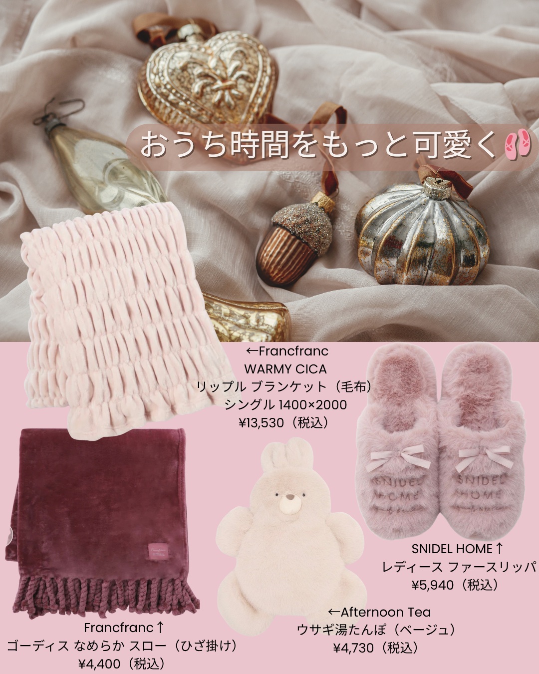 この冬は、“あたたかさ”と“癒し”をテーマに過ごしたい🍂香りに包まれてリラックスしたりお気に入りのバスソルトでゆっくりお風呂に浸かったり🛁スキンケアやヘアケアを丁寧にして、1日の終わりに「今日も頑張ったな」って思える時間を🤍ふわふわのルームウ...