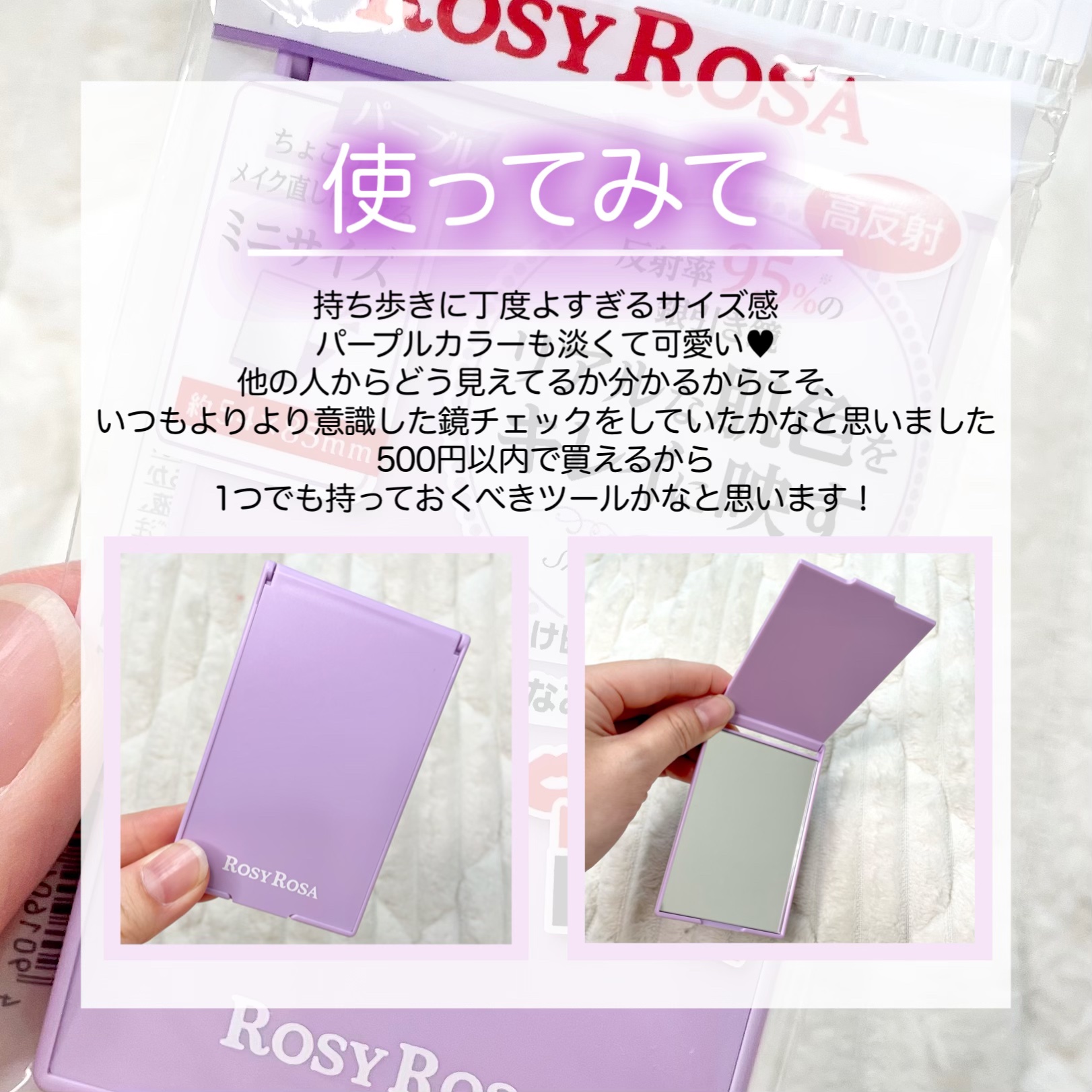 ロージーローザリアルックミラーミニパープル定番¥638〜小さくて可愛いのでいつも持ち歩くポーチの中に忍ばせています!!他の鏡との違いは正直わからないけど、便利なので愛用しています!!#ミラー#メイク道具#プチプラコスメ#プチプラ#メイクツール...