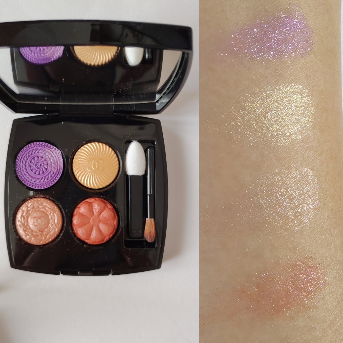 #今日のメイク今日はCHANELでメイク。レキャトルブトンはまずはブトンバロックから使ってみました。パウダーが柔らかく、もうCHANELのマークが消えました😇パープルをラインに入れました。チップでゴリゴリに乗せたんですけど色黒の私ではこれが精...