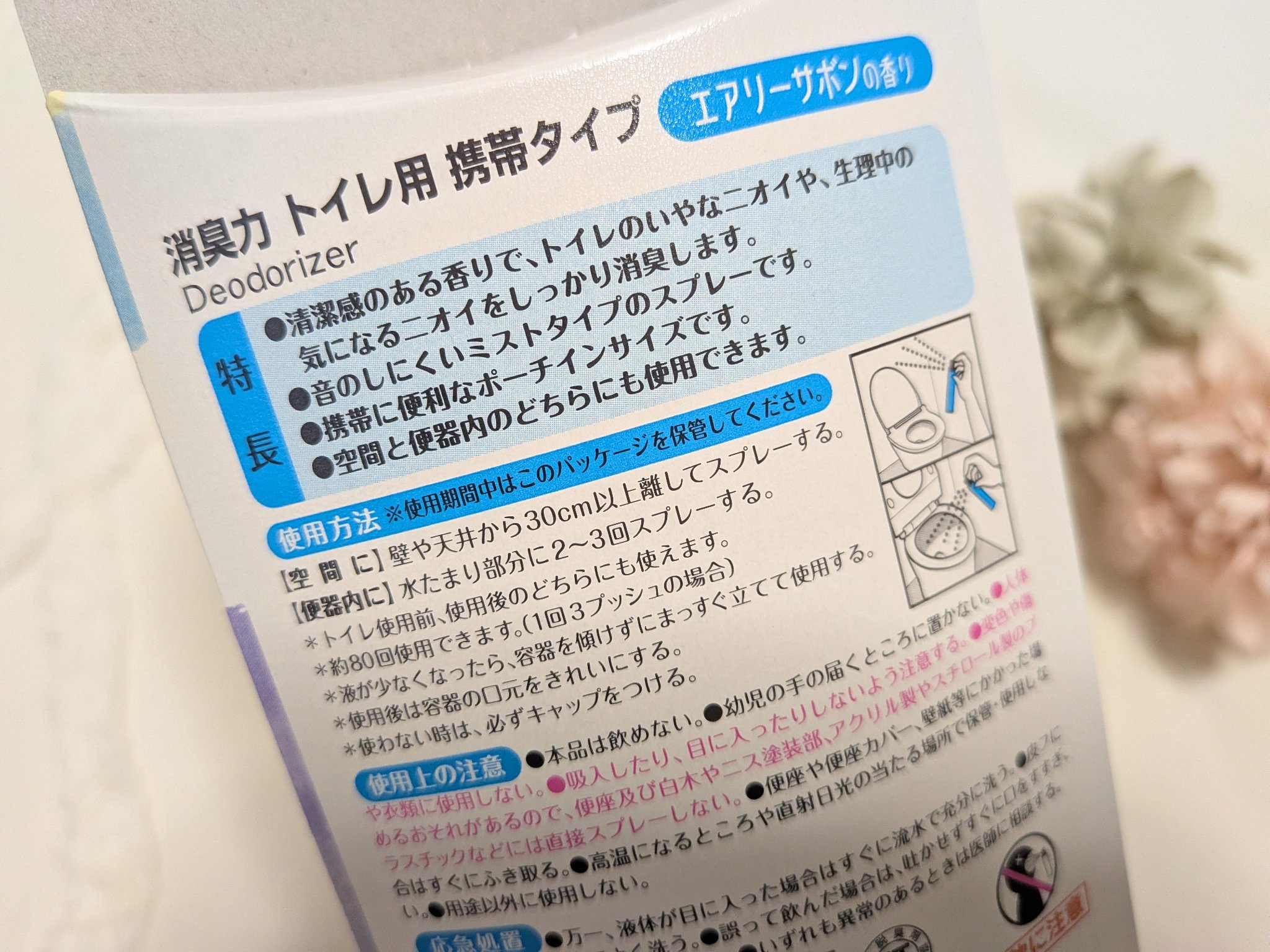 パッケージが可愛くエチケットの為に携帯用を購入したんだけどニオイが気にならなくても出る時にシュッとするようにしているんだけど思ってたほどニオイがしなかったのが残念に感じてしまった。リピートはちょっと検討しようかなと思います。