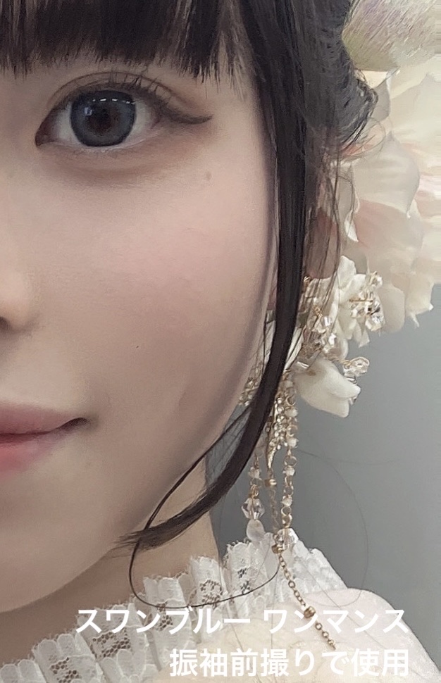 ❤︎AngelcolorBambiSeries1monthスワングレー(¥1,760)着画は屋内撮影です。ぱっと見は薄ピンクっぽいカラー。でも着けるとちゃんとグレーに発色します👍わりと自然な発色でノーメイクでも浮きづらいと思いました。着け心地...