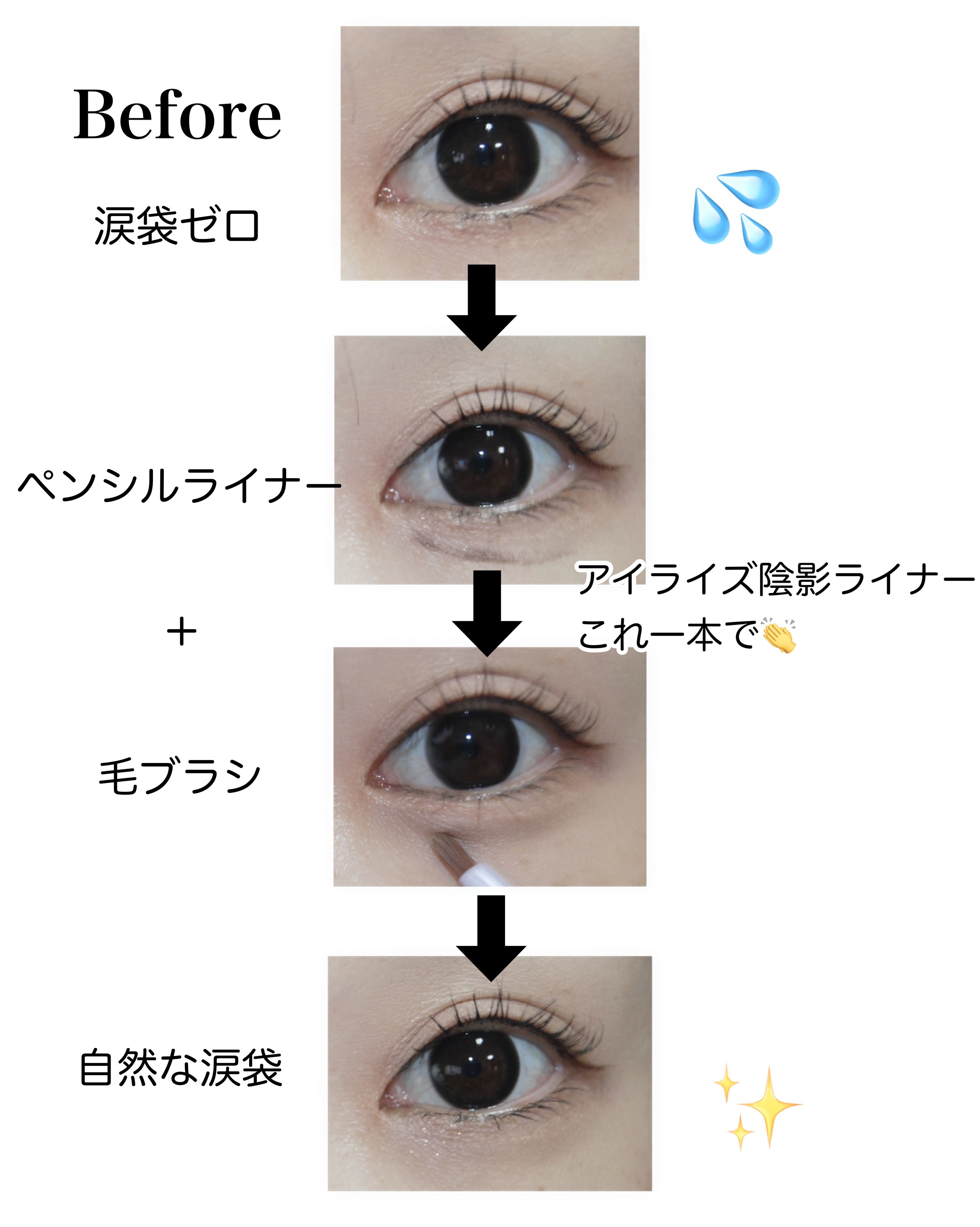 アイライナーとブレンディングブラシが一体型になっているのでアイライナーと陰影をつけたいところが1本でできるっていう優れもの💓 スルスル書けるし落ちにくいのが◎!涙袋としてはぼかしやすくて自然な涙袋ができるので非常にメイクしやすかった🤘🏻✨ 色もダークブラウンだからはっきりしすぎないし薄すぎもしないという絶妙なライン💓
