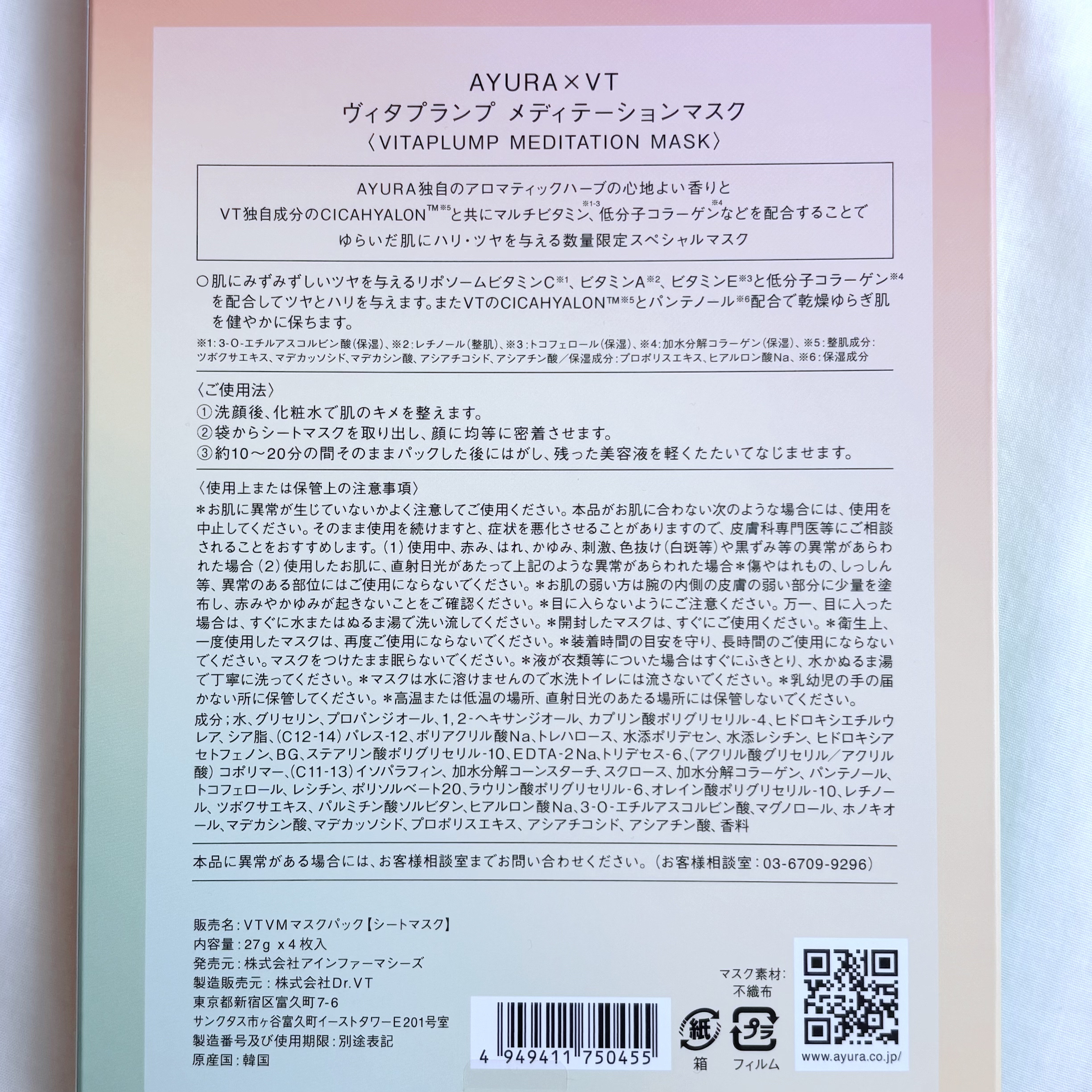 商品詳細情報AYURA×VT ヴィタプランプ メディテーションマスク 4枚入