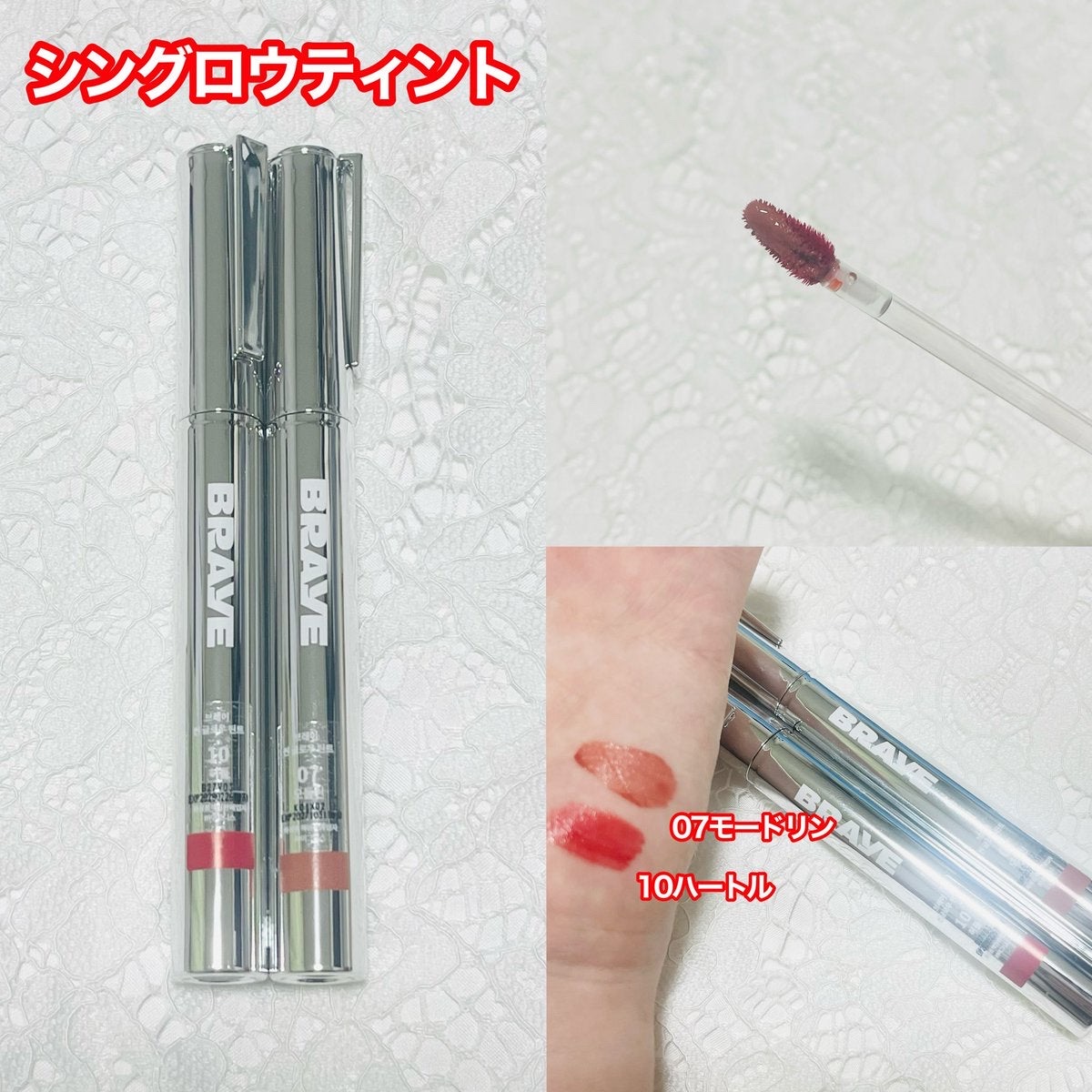 BRAYE(ブレイ)シングロウティント*・゜゚・*:.。..。.:*・'(*゚▽゚*)'・*:.。..。.:*・゜゚・*SNSでバズっている次世代飲み会リップ!スリムでスタイリッシュな万年筆型パッケージが特徴的なリップだよ💄✔︎一日中持続する...